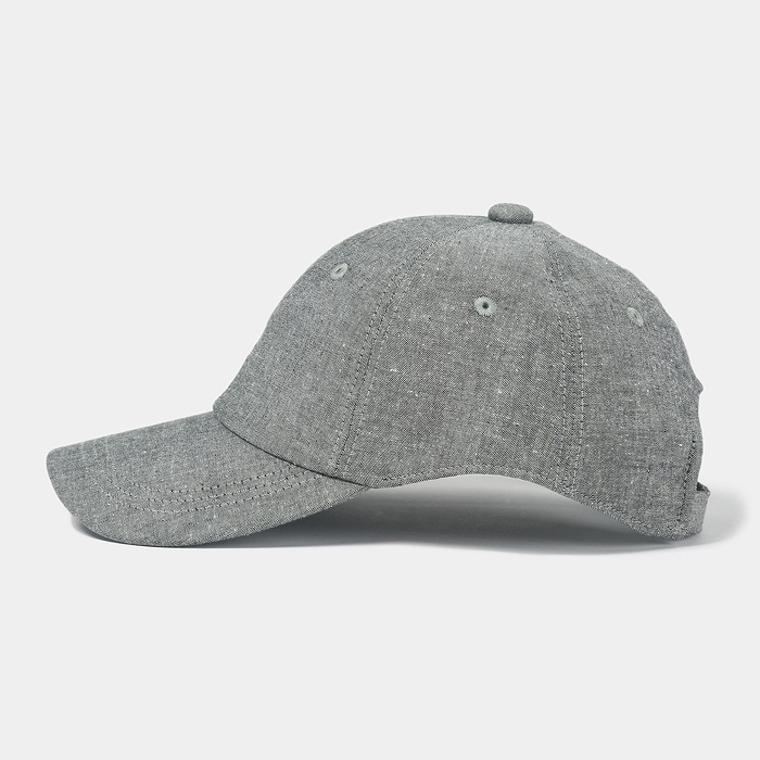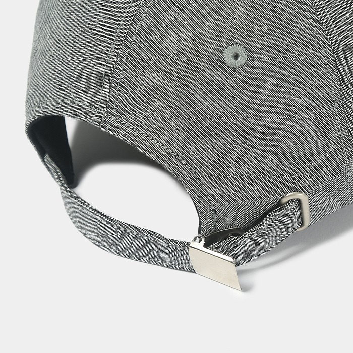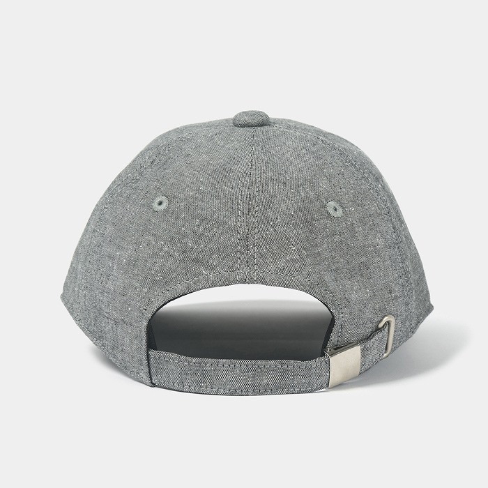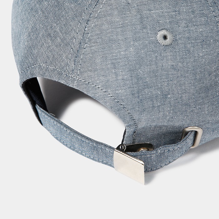 ダンガリー素材が新鮮なカジュアル感のあるヘンリー君キャップ。6パネルのコンパクトなシルエットが特長。汗止めは肌あたりのいい素材を使用。後ろのサイズ調整ベルトは外に出ない収納タイプで金属バックルがよりカジュアルな印象になっています。