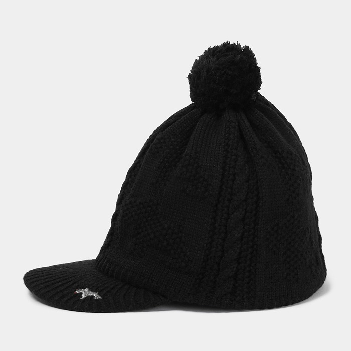 寒さが厳しい冬の朝や強風下でのラウンドには、ニットキャップが必需品です。編み込み柄でさりげなくアイコンのヘンリーがデザインされています。つばが付いているので、日差しを遮ったりマーカークリップを取り付けることもでき便利です。ゴルフシーンでの使用に最適なアイテムです。