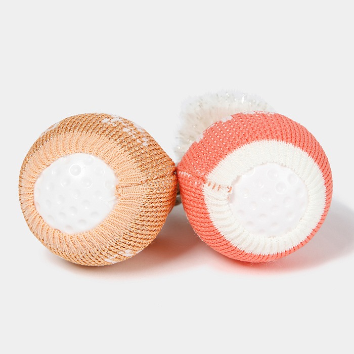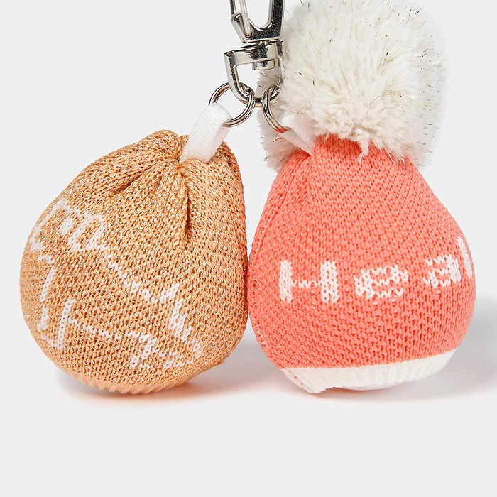 久々に展開するニットのボールポーチ。ヘンリー君が可愛いラメのタイプと、ロゴの入ったマットなタイプ、異なる質感のポーチにそれぞれ1個づつボールが入ります。その上に、ラメのポンポンを飾って大人可愛いボールポーチが出来ました。シックなウェアにも合わせやすいカラーリングで、大人買いしたくなるアイテムです。ギフトにも最適です。