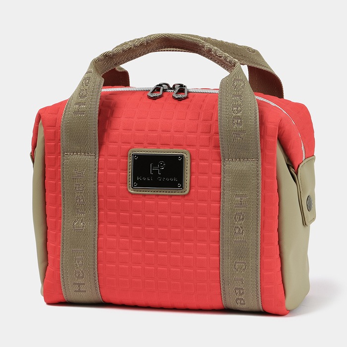 ネオプレーン素材を使って作られており、高品質なウェットスーツにも多く採用される素材です。特別なエンボス加工により、柔軟性と丈夫さを兼ね備えたバッグに仕上げられています。非常に軽量で持ち運びも簡単であり、カートバッグに使いやすいサイズ感です。バッグの裏地にはオリジナルロゴプリントが施されており、ハンドルにはロゴジャガードが使用されています。
