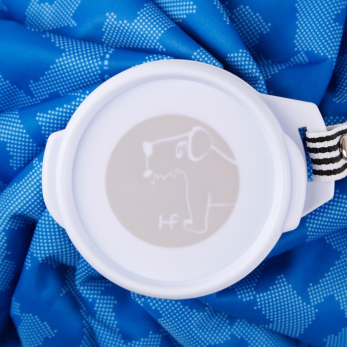 爽やかなブルーのカラーが涼し気で、Heal Creekキャラクターヘンリー君をドット柄で表現したプリントが入って、楽しく遊び心あるアイテム。カラビナもついているので行き帰りなどパッとバッグなどに付けられ持ち運びに便利。