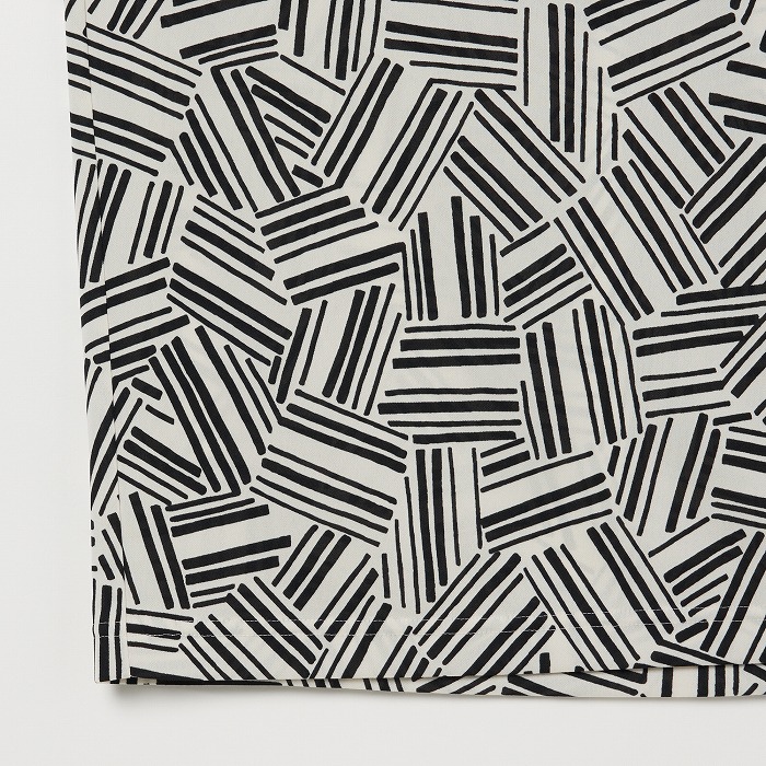 シワになりにくい強撚スムースの半袖ポロ ペンで描いた額が重なっているような コルニーチェ(額縁)柄 ラインテープを切って重ねた様な柄です。衿は濃色で締めています。