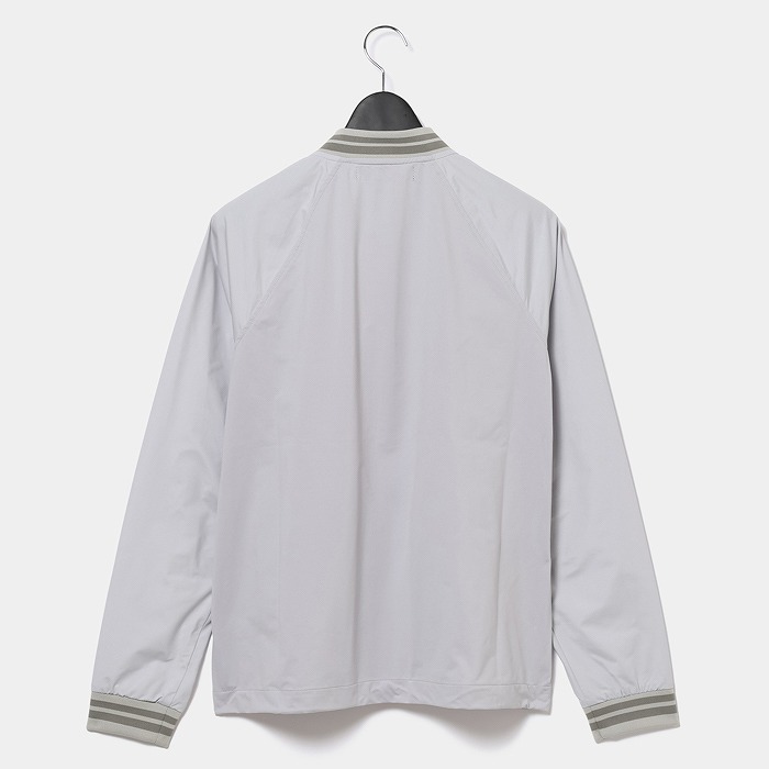 ハイゲージとスーパーハイゲージのスタジャン。トーンオントーン(同系色濃淡配色)で トレンドアイテムのスタジャンを上品な色の組み合わせで作りました。コーデしやすくタウンユースにも合う雰囲気。身頃のハイゲージ天竺は軽くてしわにならず、撥水加工付き。お袖のスーパーハイゲージコンパクトジャージは超極細で優れたストレッチ性を持つ特殊Pe糸を46Gというスーパーハイゲージな編み機で編み上げた素材。繊細な光沢感とジャージ見えしない高密度な表面感。こちらも撥水加工付き。