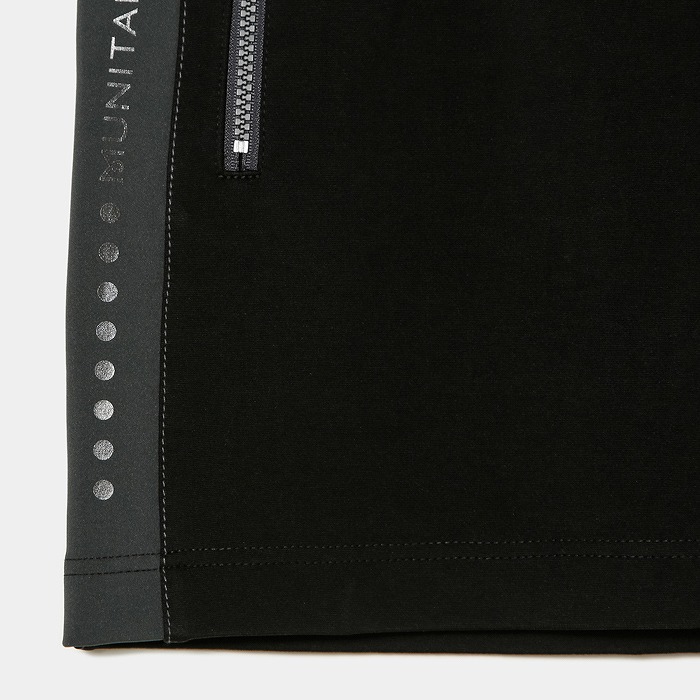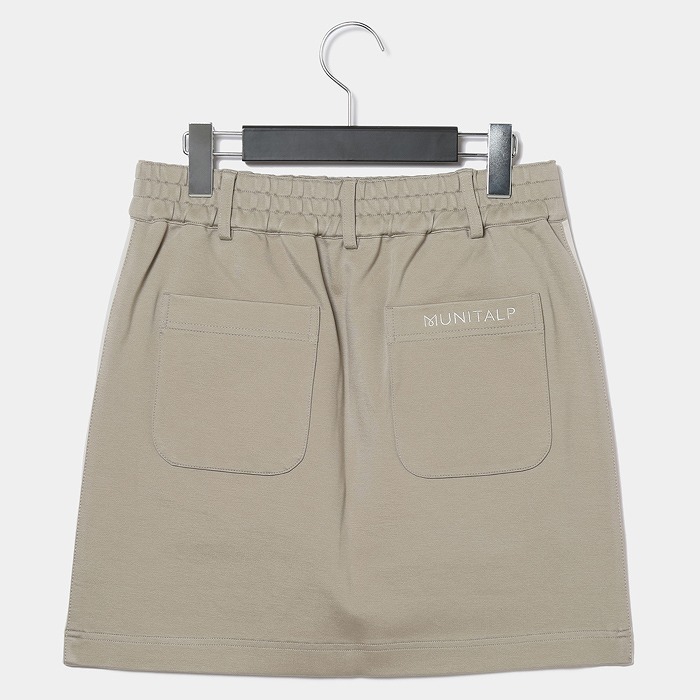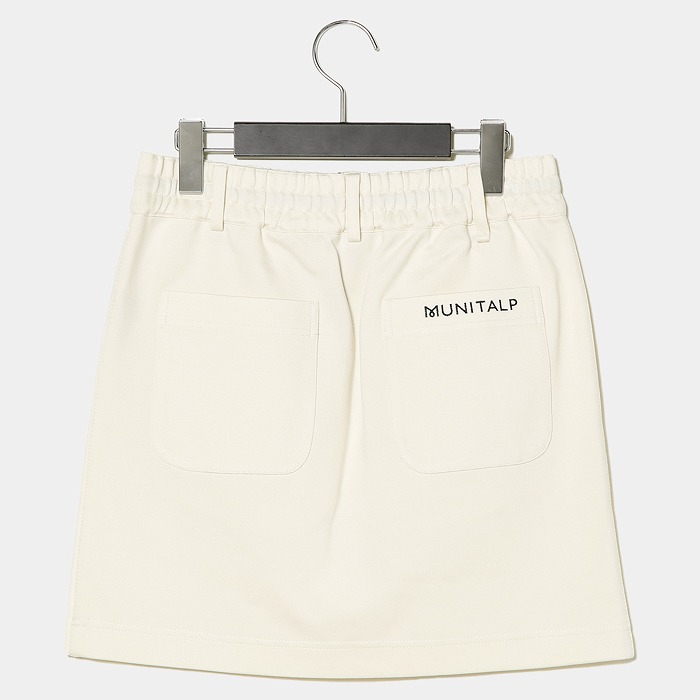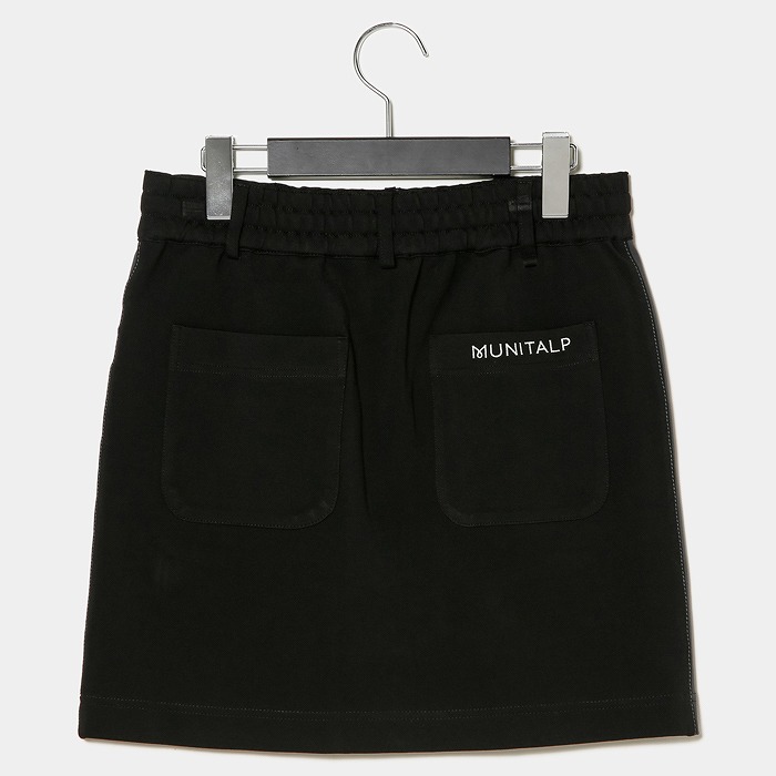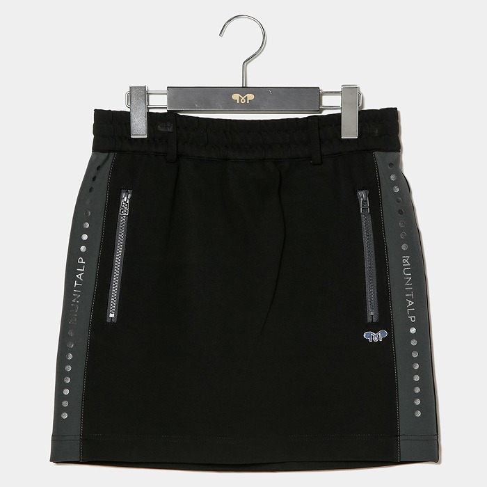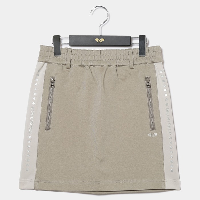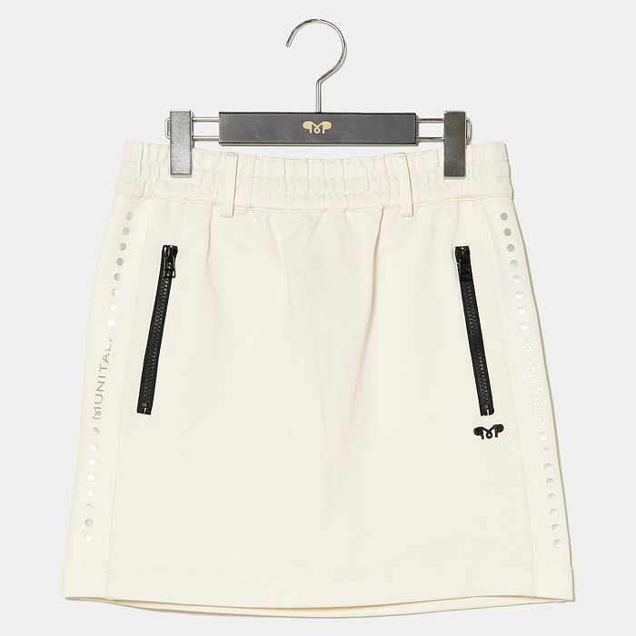 ブルゾン(005-51211)とセットアップのミニスカート。マイクロミニがトレンドですが41cmで丈を留めました。下にサイクリングパンツやスリムパンツでレイヤードしても、カッコ良い丈。少しローウエストではいても今っぽく着用できます。ブルゾンと同じく、両サイドに発砲箔プリントを施しパンチが利いていて可愛いです。ミニとポロで軽快なゴルフをお楽しみください。