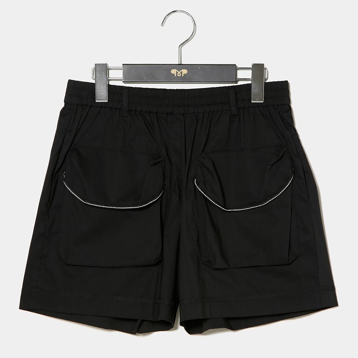 前に雨蓋付立体ポケット、後ろに立体ポケットと着ポケット、サイドにシームポケット、ショートパンツですがいろんなものが入ります。きれいな足の方はこれ一枚で涼しく暑い夏のゴルフをお楽しみください。ちょっと恥ずかしい方は涼しいレギンスや、圧着レギンスなどに重ね着すると、格好良いです。ローレンス刺繍×C.Nyハイカウントローンブルゾン(005-51410)とセットアップになります。