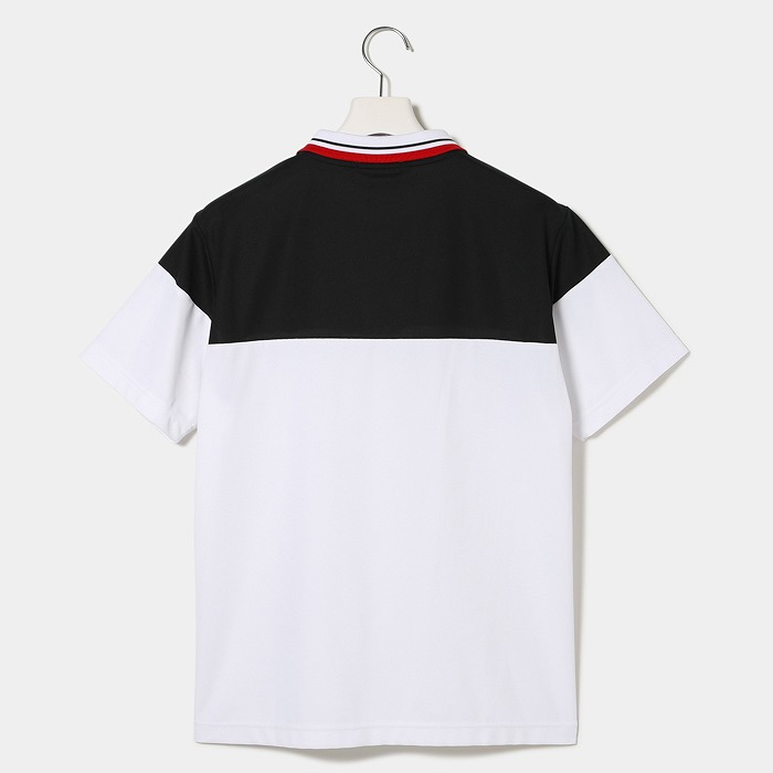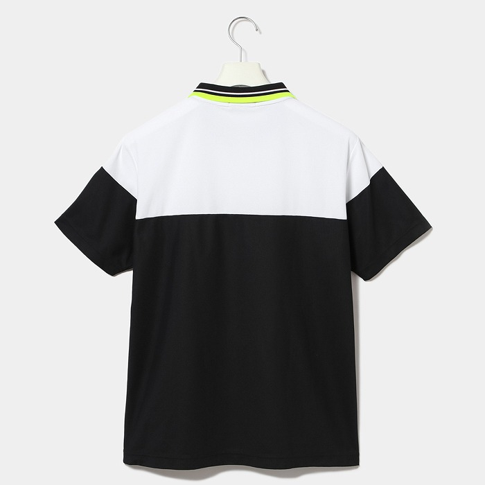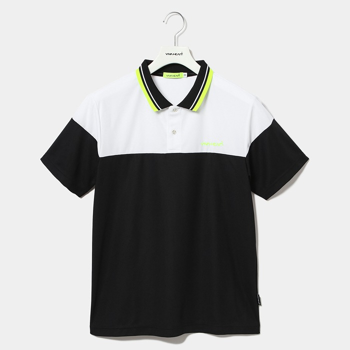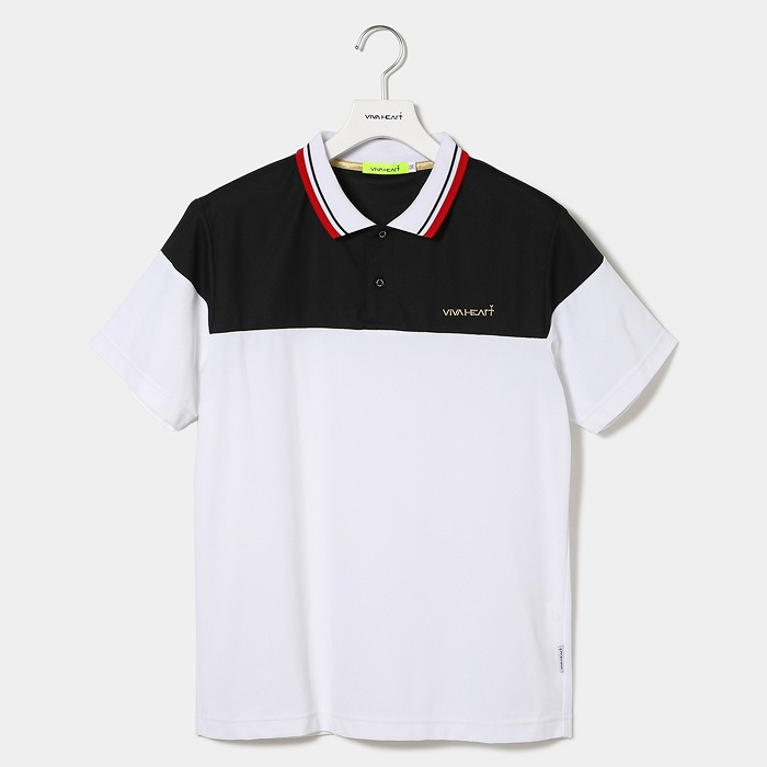 透けづらく機能性も抜群なカノコ素材を使用したポロシャツ。通常のポリエステルに比べ高い接触冷感性を持つ素材を使用している為、この時期の着用には心地良い商品です。汗をかいても素早く乾くので着用中のムレ感を軽減させます。スポーティーでシャープなカラーブロッキングが流行りのアーバンゴルファーに昇華させる万能アイテムです。