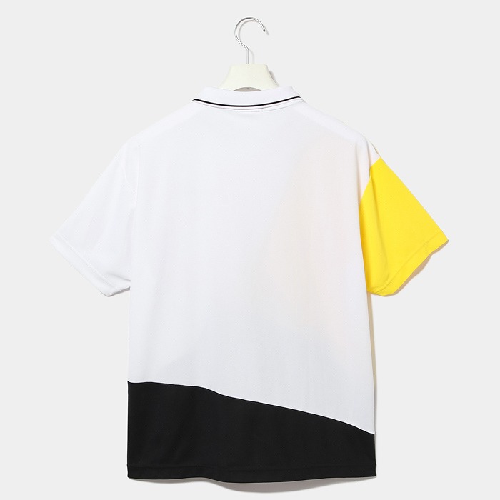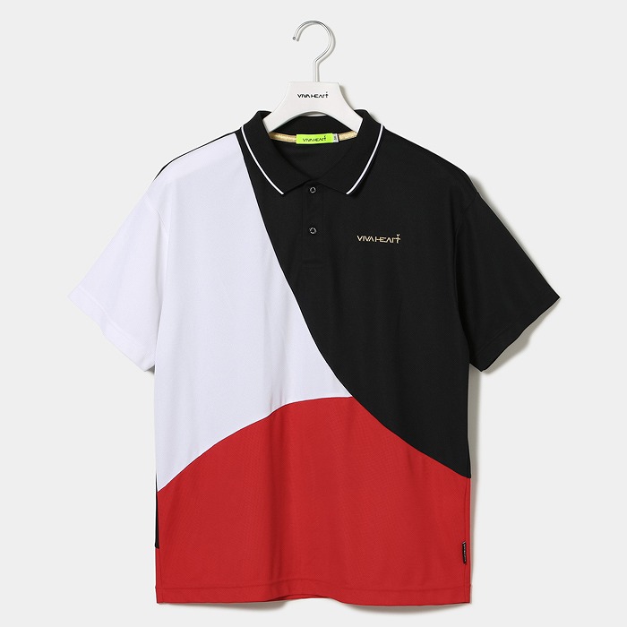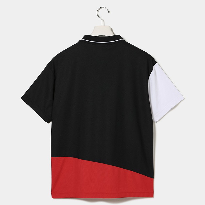 透けづらく機能性も抜群なカノコ素材を使用したポロシャツ。通常のポリエステルに比べ高い接触冷感性を持つ素材を使用しているため、この時期の着用には心地良い商品です。汗をかいても素早く乾くので着用中のムレ感を軽減させます。大胆なカッティングで構成されたマルチカラーブロッキングは取り入れやすいストリートカジュアルを演出します。