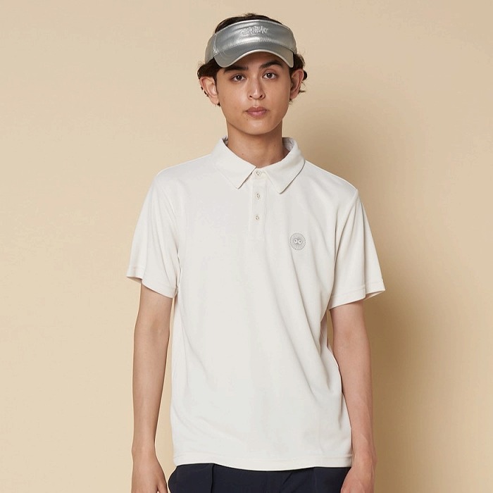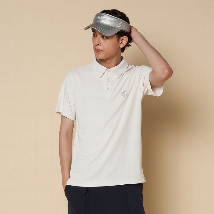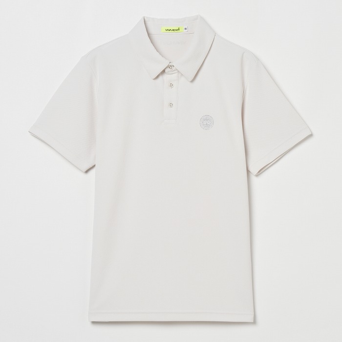 残暑が厳しい時期のゴルフに吸水速乾素材を使用。高級感漂うカノコはストレッチ性に富み、肌面はスムースになっているので着心地はなめらか。台衿で大人らしいポロシャツに仕上げました。VIVA HEARTのアイコン「ハートアイ」を胸にワンポイントでプリント。グリッタープリントでさりげなく、かつ存在感を演出します。