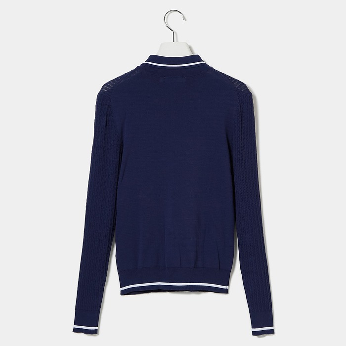 しっとりした重さと滑らかなストレッチ感のあるレーヨンナイロンの糸を使った、細ケーブルニットです。ピッタリすぎないサイズ感ですが、糸の特性の滑らかな落ち感があり着ぶくれせずスッキリした着用感のニットトップスです。細かめなケーブル編みが上品で存在感が有るので、デザインの有るボトムからシンプルなボトムまでスタイリングしやすいアイテムです。同じ素材のスカートと合わせたワンピース見えのスタリングもおすすめです。