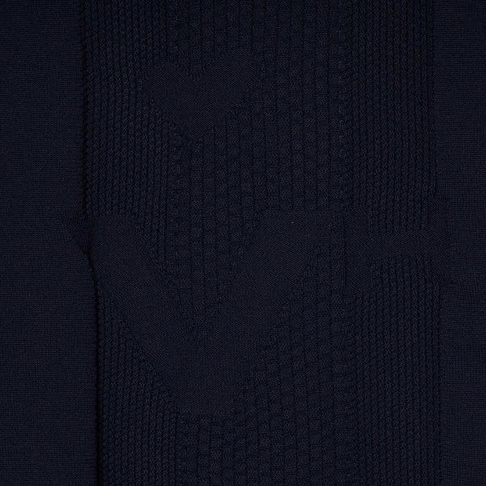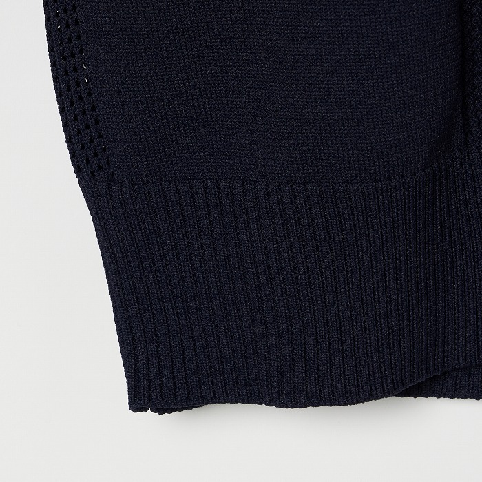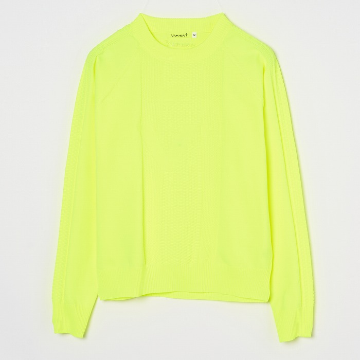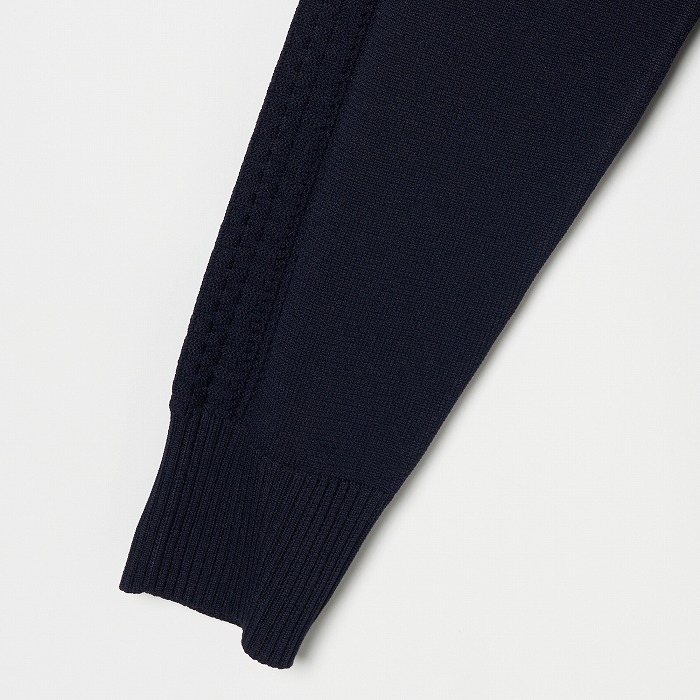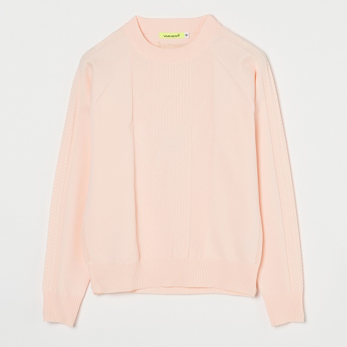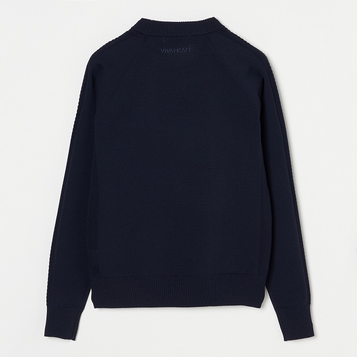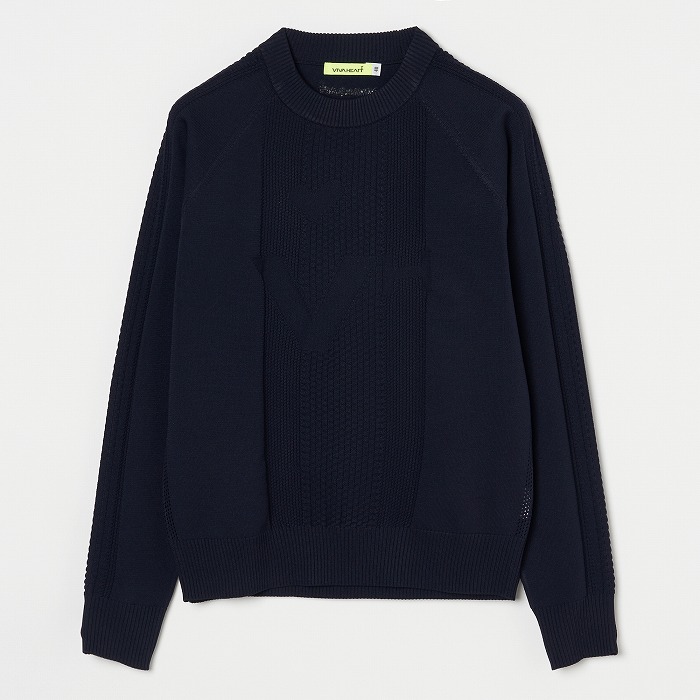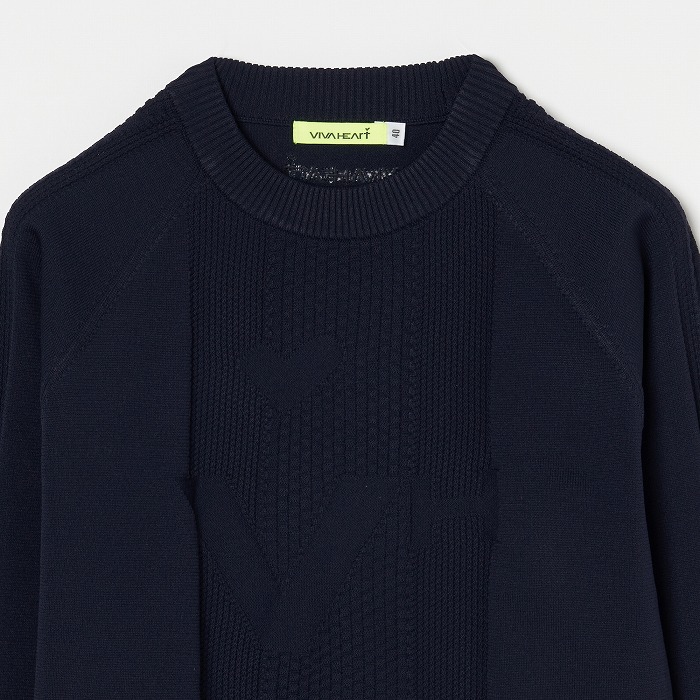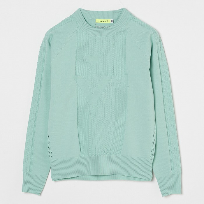 「一色で魅せる」がテーマ。編地の変化でデザインの抑揚をつけたニットならではの表現が味わい深いです。せっかくの単色表現なので大胆にVHハートを配置。ハートマークを敬遠しがちな方に向けてアプローチしたいアイテム。