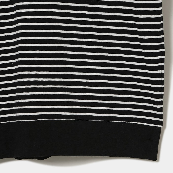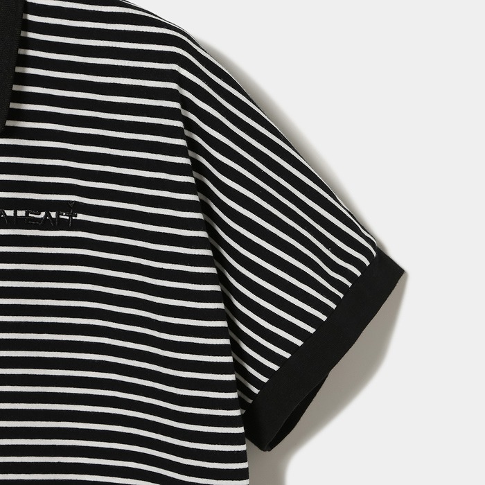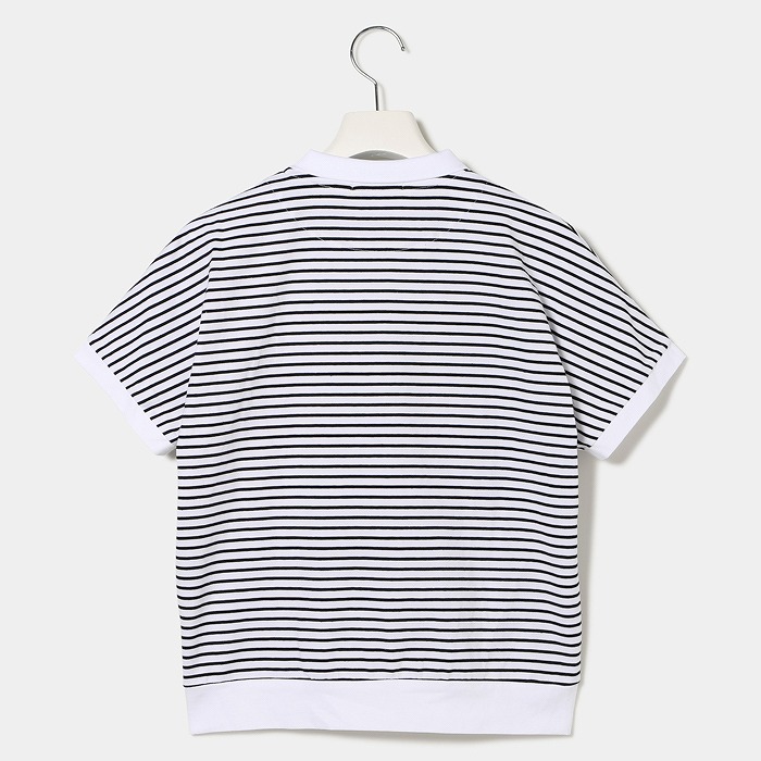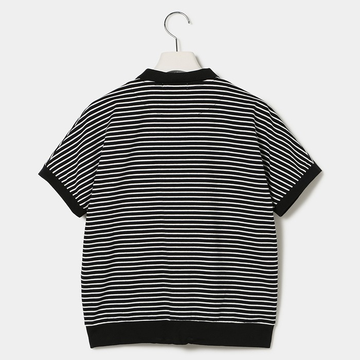 綿のナチュラルな風合いに包まれたベア天竺リラックスドルマンシルエットの半袖ポロシャツ。オールシーズン着用する事のできるこのアイテムは綿の持つソフトでナチュラルな風合いと心地の良いストレッチを持ち合わせているのが特徴です。先染めのクリーンなボーダーと無地のコンビネーションで少し余裕のあるサイジングがリラックスして着用できるアイテムです