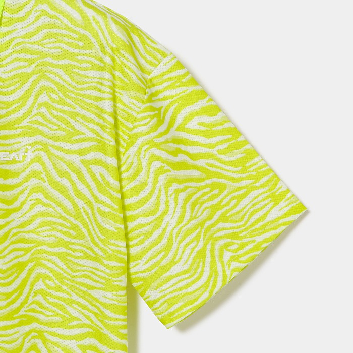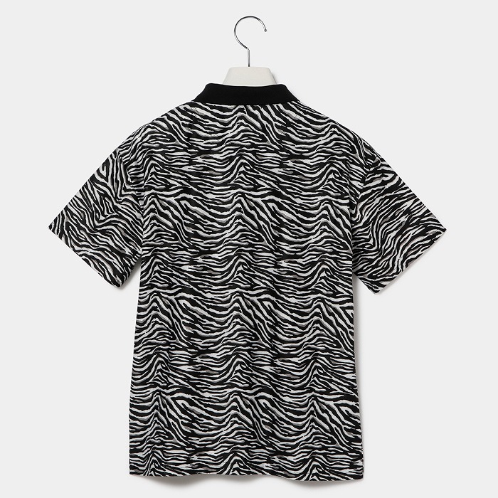 ストレッチ性が抜群な初夏に向けてのコンフォータブルなワイドシルエットシャツ。生地自体がメッシュ構造になっている事と抜群のストレッチ性がある為、身体の動きに合わせて生地面が通気口の役割りをもたらし、ゴルフプレイに最適な素材を使用しています。ゼブラの柄のプリントはクールでカッコ良い感じは残しつつ着用しやすい柄に提案しているアイテムです。