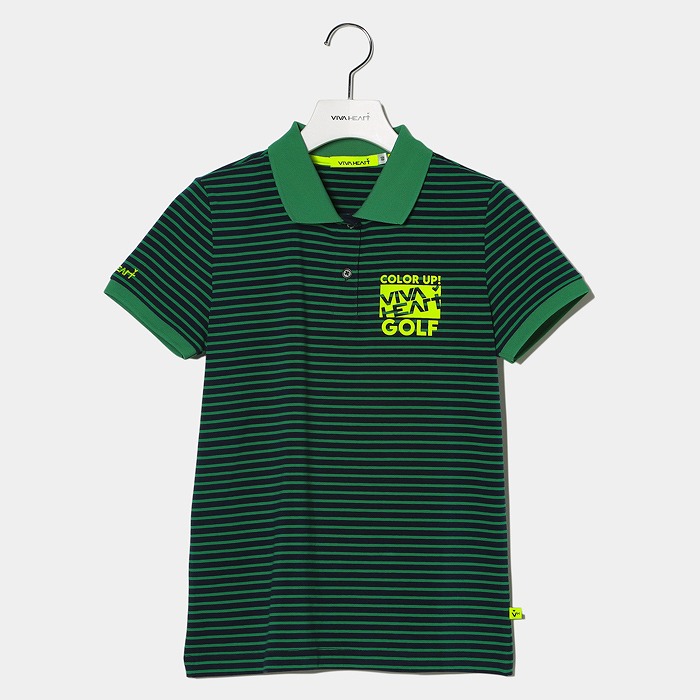 ボーダーのクリーンな春のポロアイテムの登場です。胸のプリントがアクセントになって、小さ目の編立の衿もポイントです。綿のナチュラルな風合いにストレッチ性をプラスさせている為、スイング時の身体の動きに程よく追従し着心地は抜群です。カラーもスタイリングに合わせやすいクリーンな色目で表現したオールマイティーアイテムです。