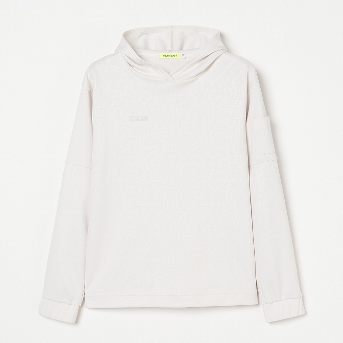 VIVA HEARTオリジナルのオンブルモノ柄のエンボス加工が施されたミドラーフーディ。 ゆったり可愛いシルエット×軽量仕様にこだわったFit&Relaxなアイテム。 袖のミニポケットはマーカーなどちょっとしたものを入れるのに最適です。