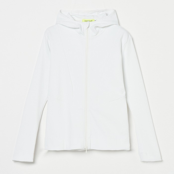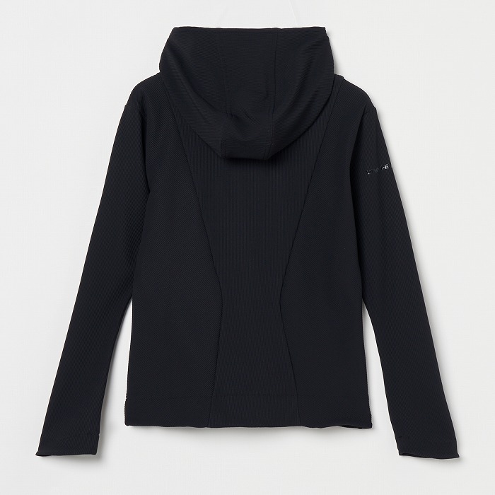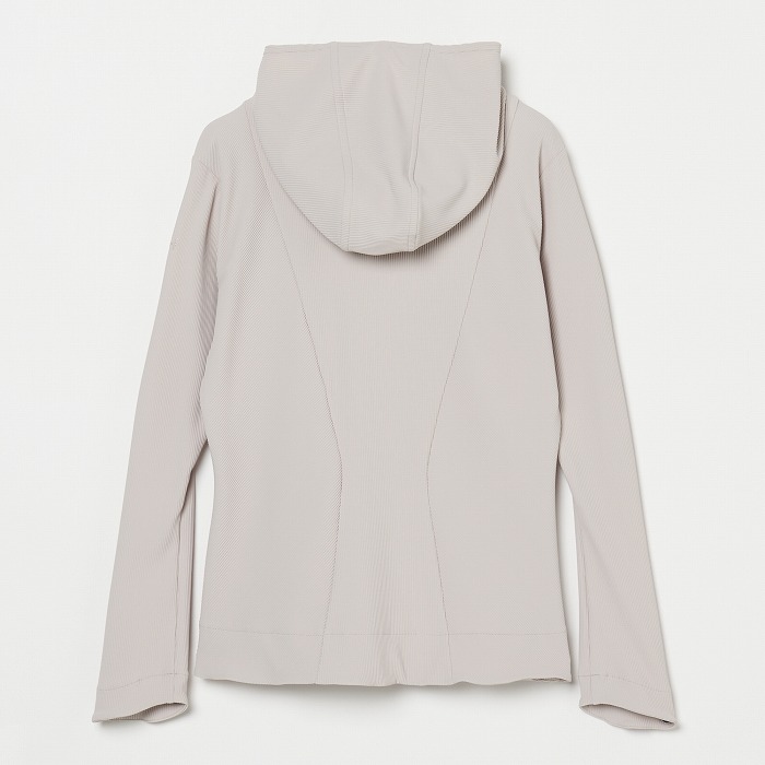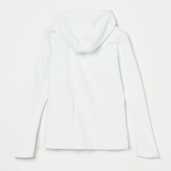 伸縮性の高い吸水速乾素材を使用したテレコパーカー。 ぴたっと肌に馴染むフィット感は他にはない着心地。日焼け防止の袖口カットや計算されたウエスト切り替えは スタイルアップ効果と細見えを叶え、ボトムに合わせてアレンジ可能な逆開ファスナーで、快適な着心地を提供します。