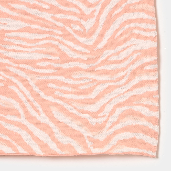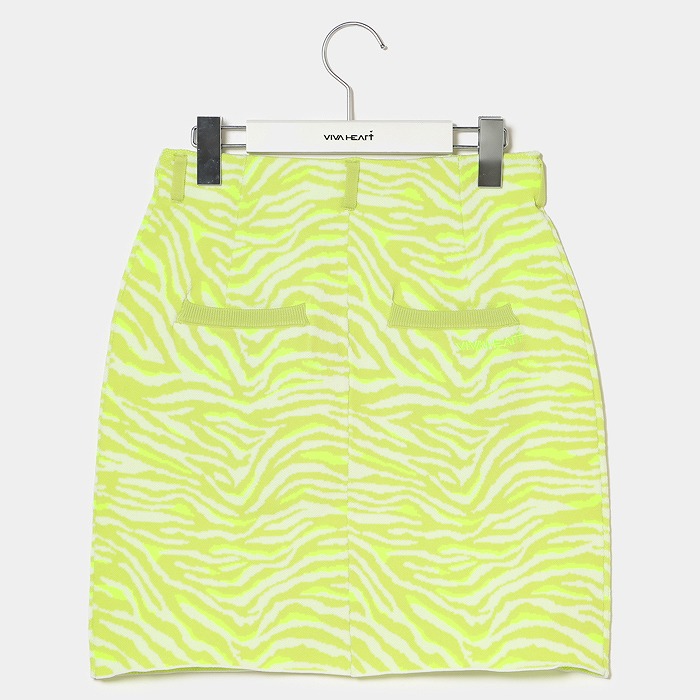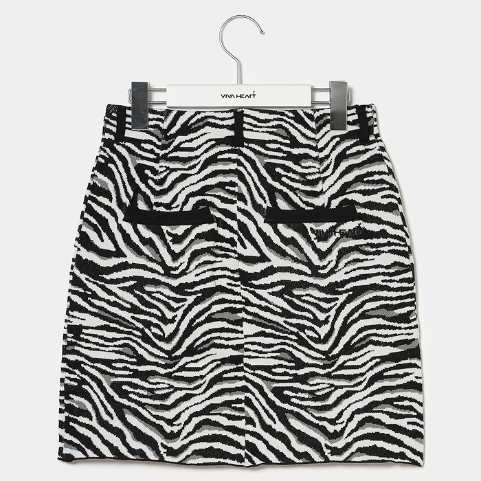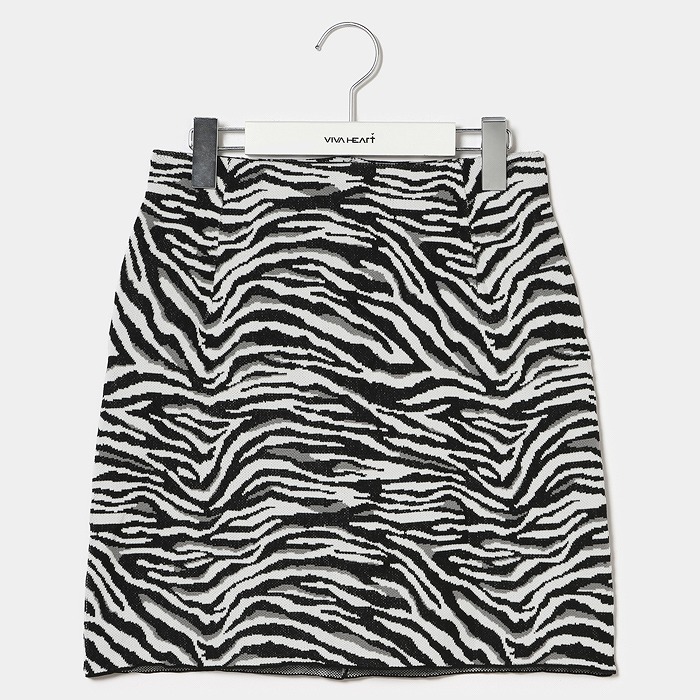 軽量なポリエステル素材を使用したジャガードニットスカート。強めのアニマル柄とはひと味違ったゼブラ柄のニットです。色使いにこだわりシンプルながらに3配色を使い表情の有るゼブラ柄に仕上げました。同じ柄のトップスニット(012-11211)と合わせセットアップのスタリングができるアイテムです。