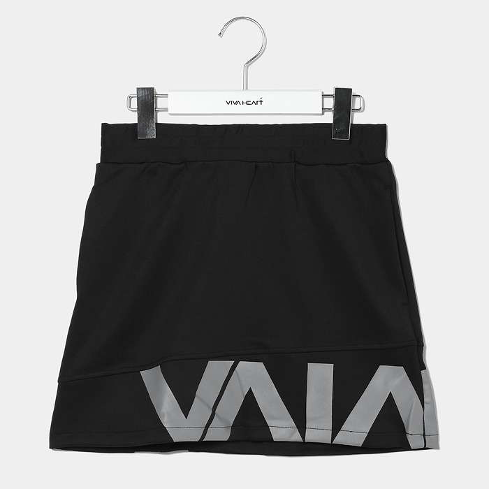 ストレッチ感と膨らみを持たせた滑りの良い上品なつや感のある軽量ダンボールジャージ素材を使用した動きやすいスカートです。裾に切り替えを入れてビッグロゴプリントがスポーティーでアクセントになってます。程よくストレッチも効いていて動作性も◎ ウエストゴム+紐付きで、フィット感の調節も可能。バックウエストにはループ付きで、ボールポーチ等フック付きのツールを付けられて便利