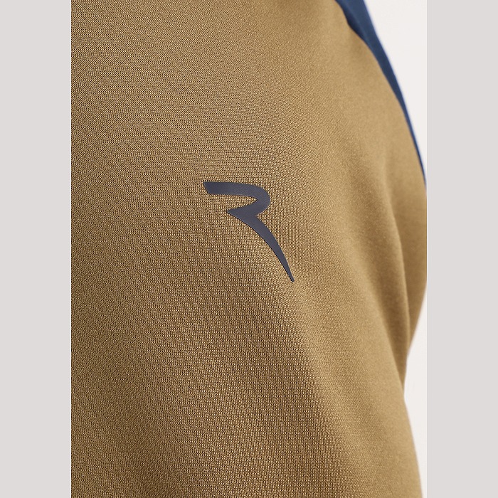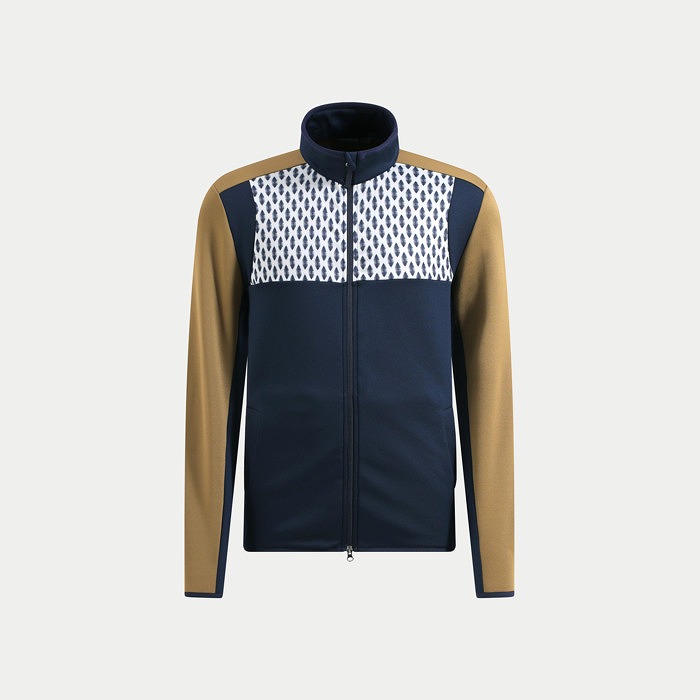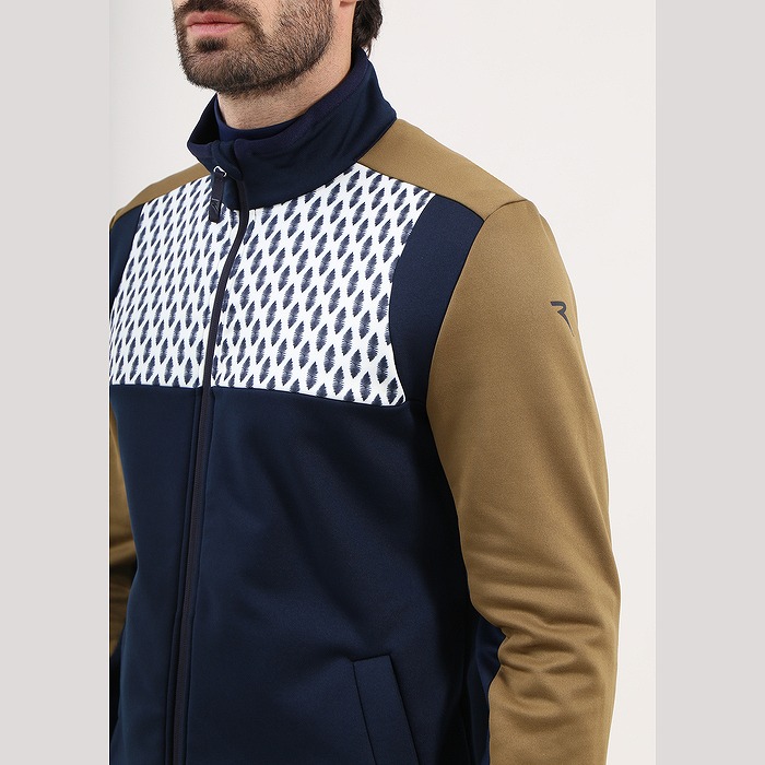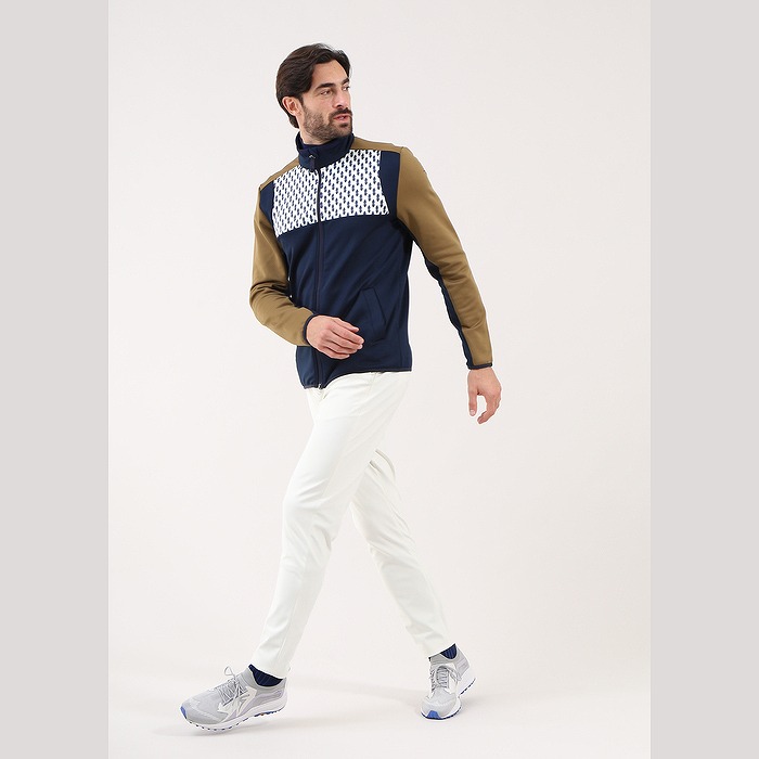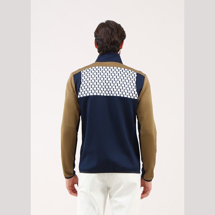 サーモフリースを使った前面切り替えのブルゾン。前面上部には今シーズンのモチーフ(森のシダ)を、それより下部と腕の内側は配色の切り替えとなっています。ファスナーはダブルジップ(両開き)タイプとなります。