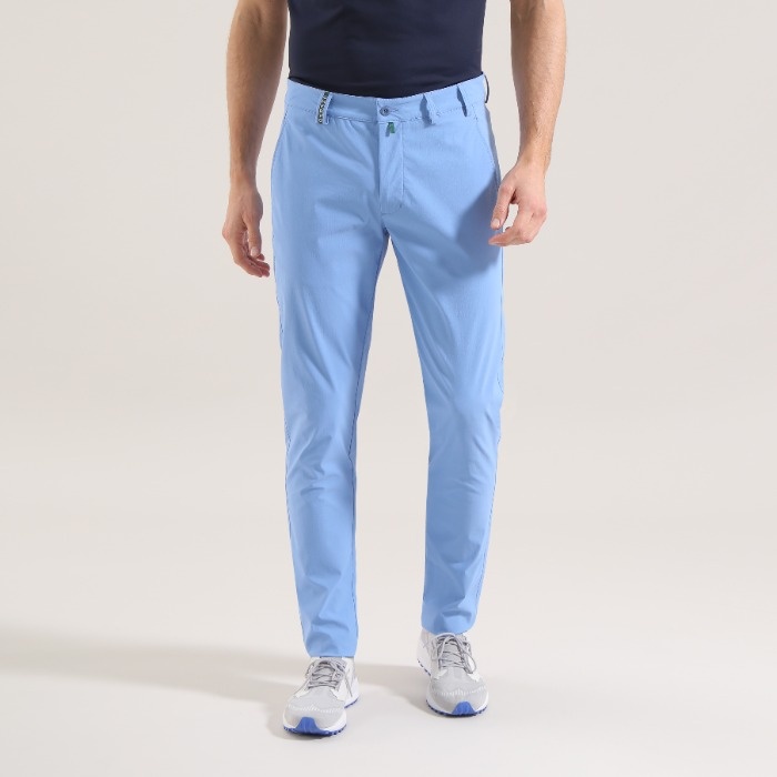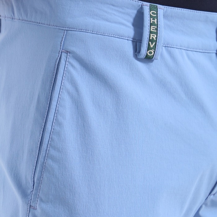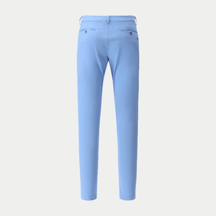 UVカット機能のついた無地のパンツ。裾幅は17㎝。後ろのポケット口は両玉縁タイプ。右後ろポケットサイドにRマークの刺繍があります。