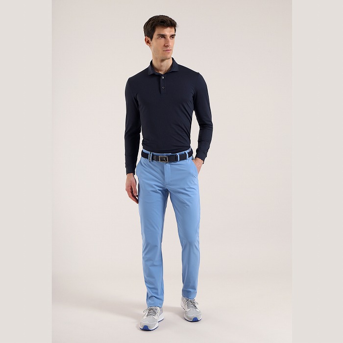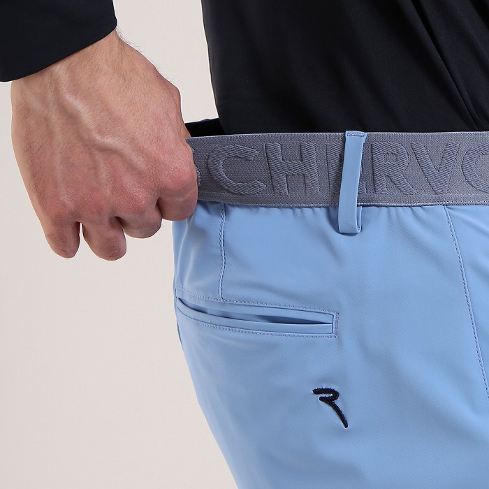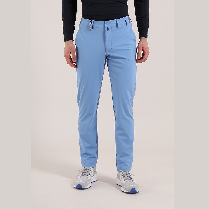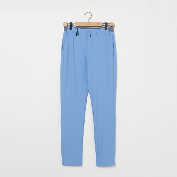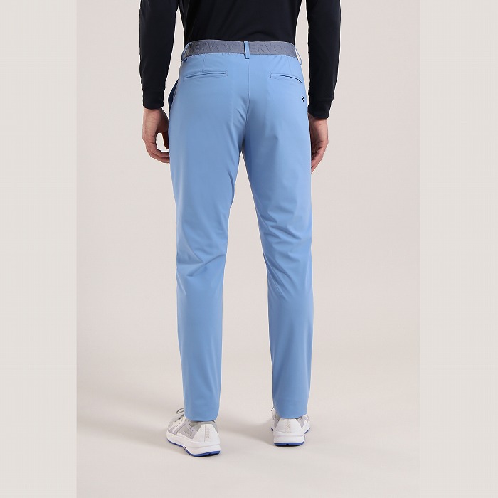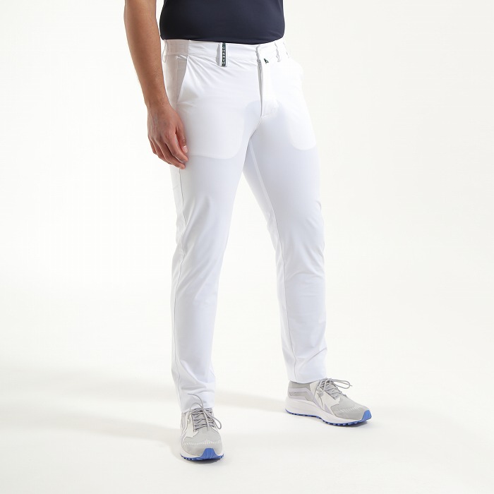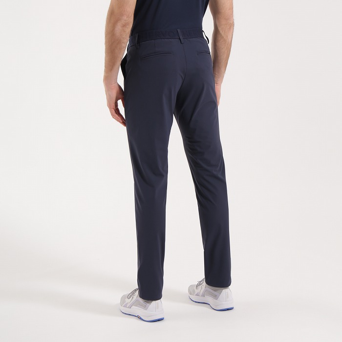 UVカット、吸水速乾、4WAYストレッチが素材特性のメンズパンツ。裾幅17cm。ウエスト後ろ側はロゴ入りゴム素材となっており、すっきりとしたデザインを引き立てます。ウエスト後ろ内側にはすべり止めがついています。ウエストの開閉はダブルボタンとファスナーになり、さわやかで着心地がよく、スリムなフィット感がデザインを引き立てます。素材はナイロン/ポリウレタンとなります。