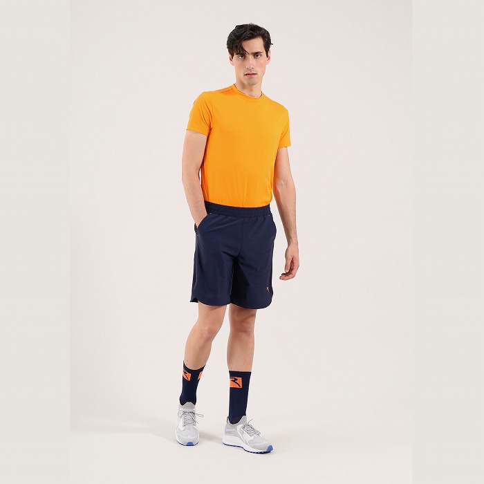 今シーズンより始まったアスレジャー志向のメンズハーフパンツ。ウエストは総ゴムとなります。股下23cm。裾幅31cm。素材特性はUVカット、吸水速乾、4WAYストレッチとなり、素材はナイロン/ポリウレタンとなります。