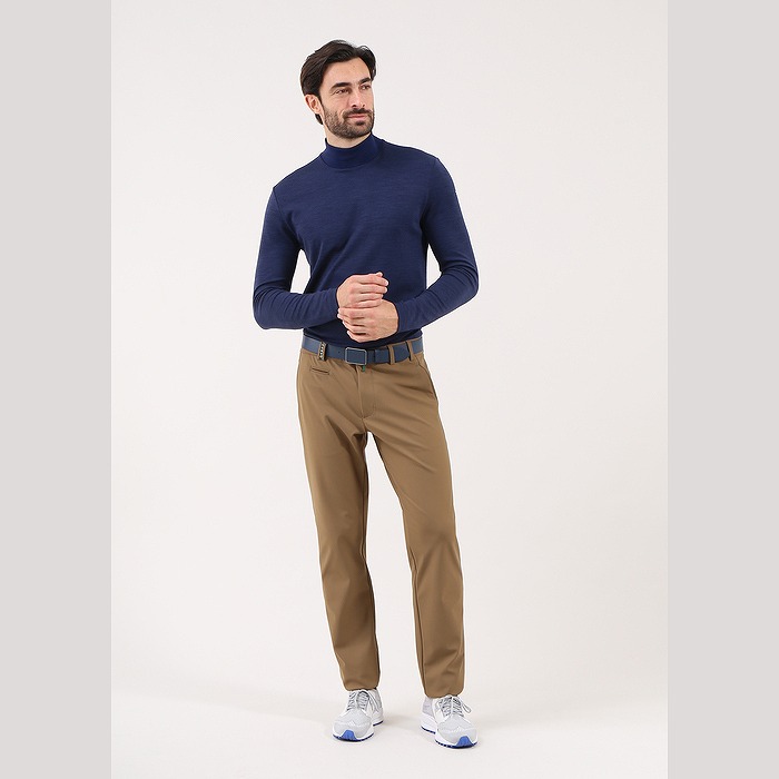 毎年好評の裏側が起毛された暖かい肌触りと保温性を兼ね備えた高ストレッチ性のパンツ。防寒用として、2~8℃の気温時に最適なアイテムです。裾幅18cmのシルエット。前のポケット入口は縦ポケットとなっており、右前にはコインポケットもあります。後ろのポケットは両玉縁ポケットで正統派スラックスの印象のデザインとなります。”THERMO SOFT SHELL”はシェルボのトップセール素材として、長年にわたり、支持されています。