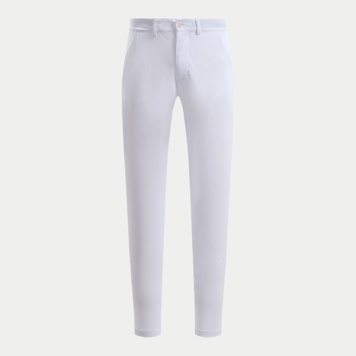 日焼け防止機能を備えたストレッチチノ。涼しげな感触で、シーズンを通して快適に着用できます。グリップのあるウエストバンドがフィット感を向上させ、ジッパーとダブルボタンの留め具、ダブルウェルトの後ろポケットがスタイリッシュなデザインを演出。スリムフィット。