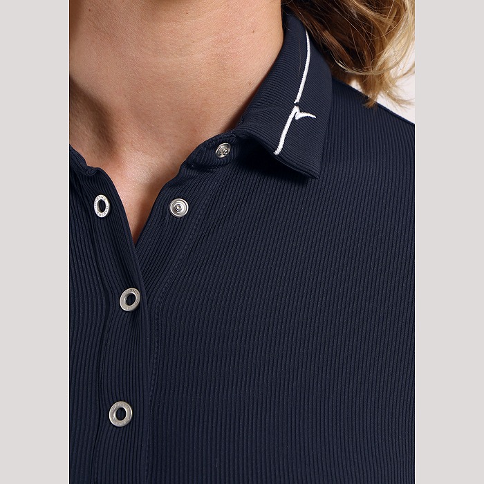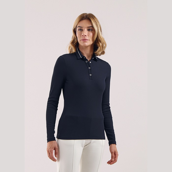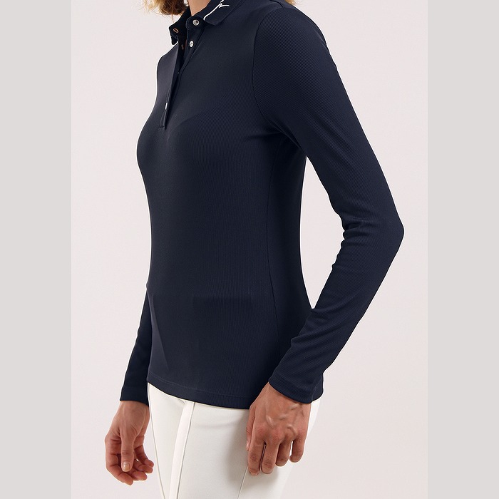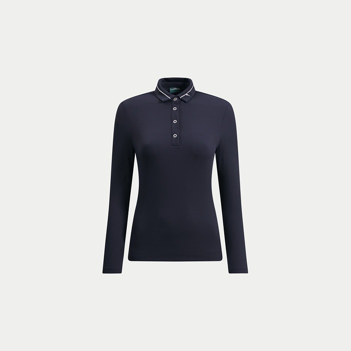 全身のリブ組織と襟のラインが特徴の長袖ポロ。素材は毎シーズン好評でストレッチがあり、中空繊維を使用した保温性がある素材となります。裏起毛のため、肌触りも暖かく感じられます。