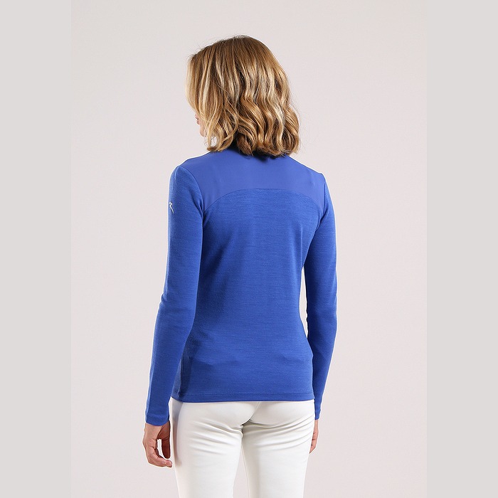 上半身の切替が特徴のジップアップシャツ。素材はナイロン/ウールとなり、保温性もあります。