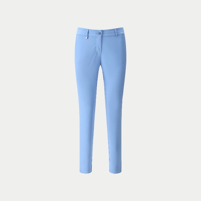 裾幅13㎝のやや細身のロングパンツ。ウエスト後ろ部分はストレッチ素材を嵌め込んだデザインとなります。素材機能はUVカットとなります。