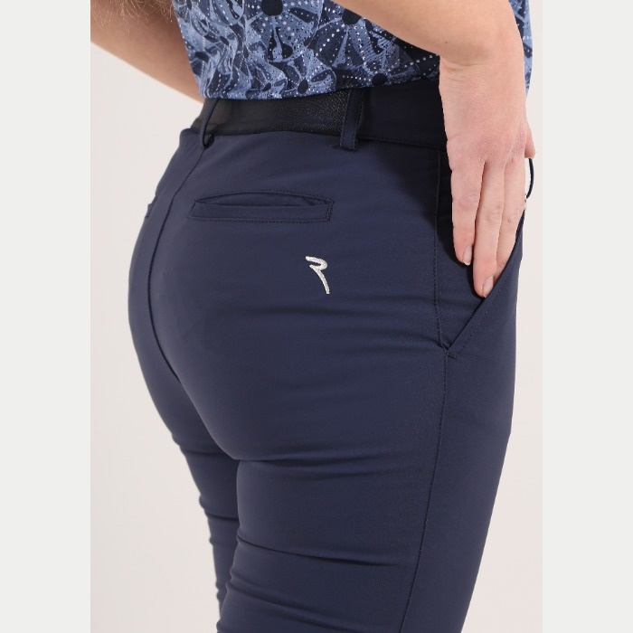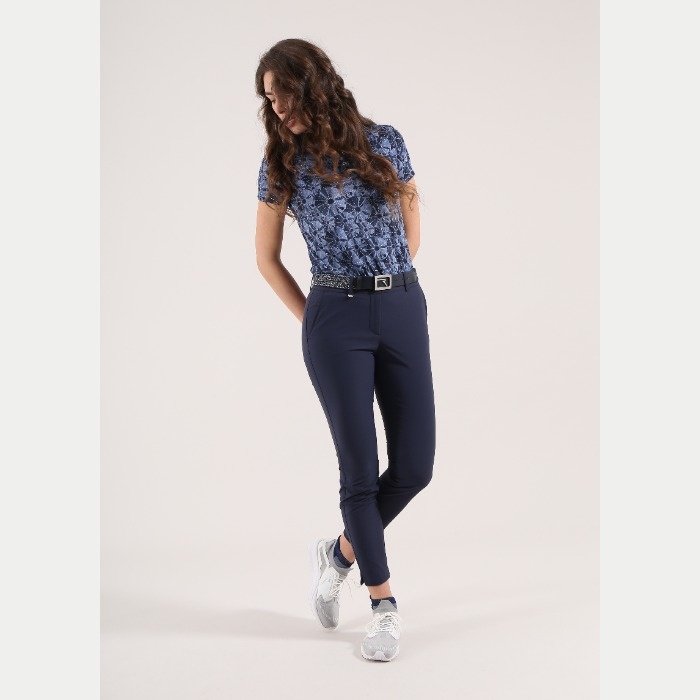 裾幅13㎝のやや細身のロングパンツ。ウエスト後ろ部分はストレッチ素材を嵌め込んだデザインとなります。素材機能はUVカットとなります。