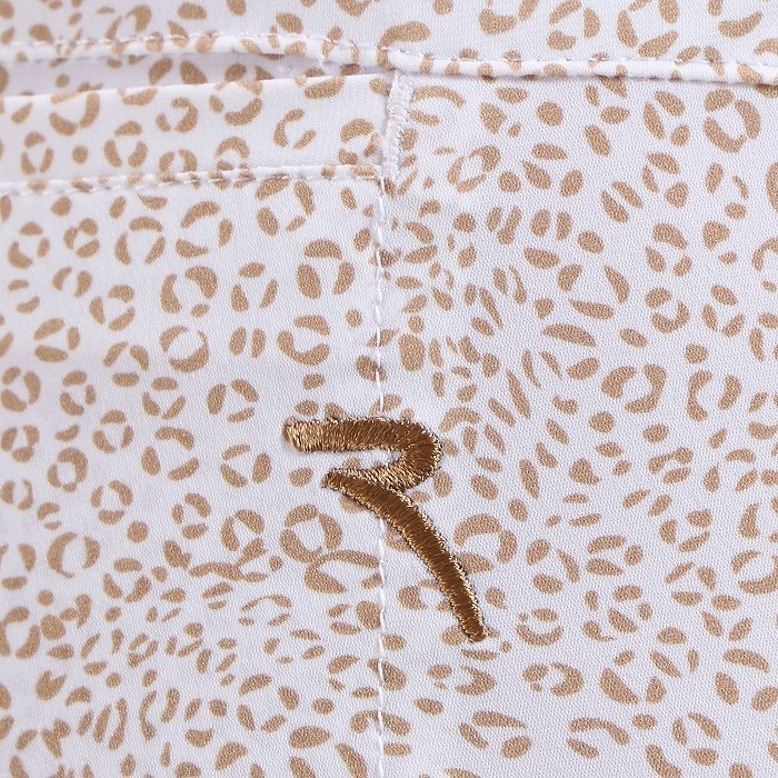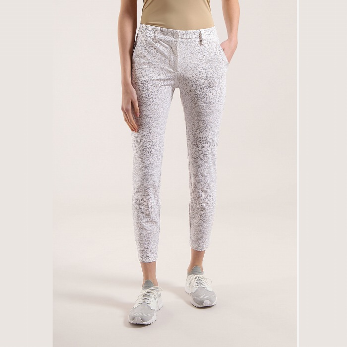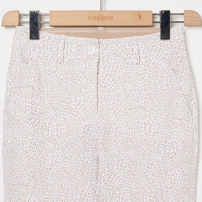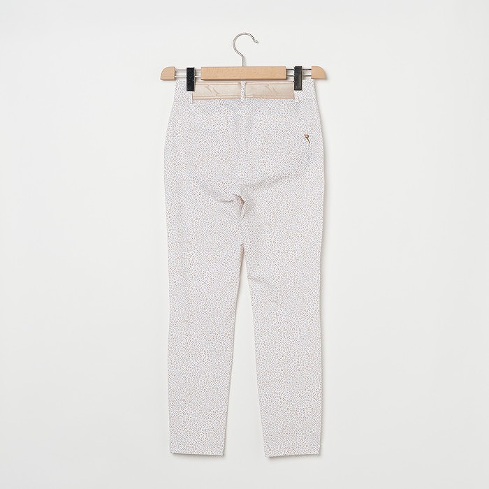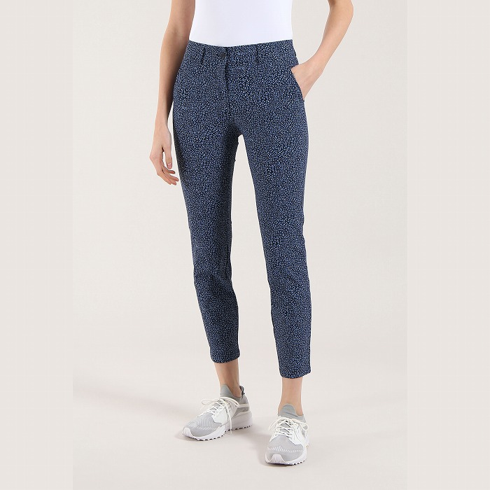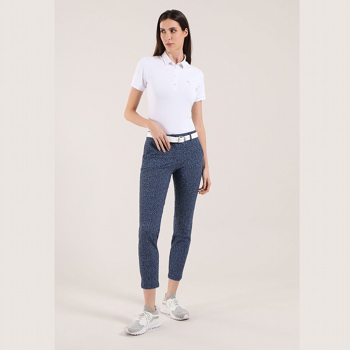 全身プリントのレディースパンツ。股下70㎝。裾幅14㎝。プリントの柄はデザイナーたちの想像力を象徴する『水』の要素をテーマとした海洋生物のプリントになります。素材はナイロン/ポリウレタンのリサイクル素材で、素材特性はUVカット、吸水速乾、4WAYストレッチとなります。