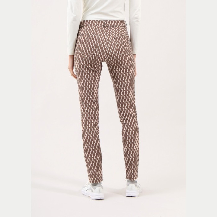 スーパーストレッチ素材を使用した5ポケットパンツ。マットな質感と全体に施されたプリントパターンが特徴で、スタイリッシュな印象を与えます。ゴルフシーンでも快適に動けるデザインで、プレー中の動きやすさを追求しました。おしゃれで機能的なゴルフウェアをお探しの方にぴったりのアイテムです。