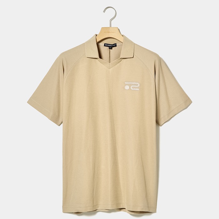 吸水速乾・UV機能を併せ持つ鹿の子目のエコ素材を使用。スキッパーの衿とポップなバックプリントが特徴でスポーティさとカジュアルさを併せ持つアイテム。スイングを妨げない袖の仕様でゴルフに最適。