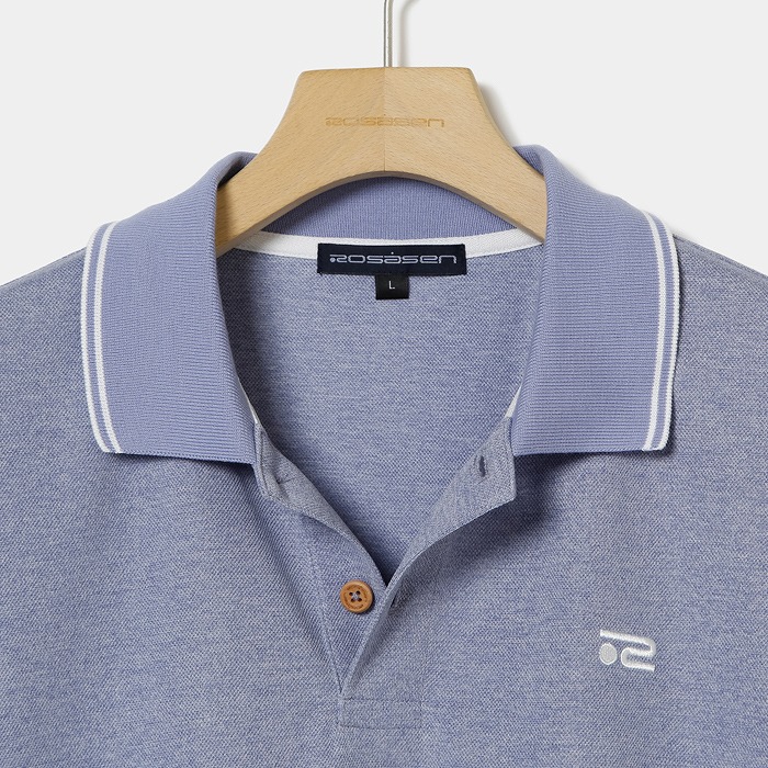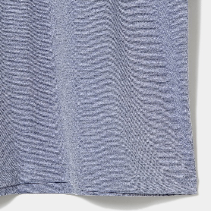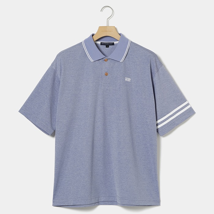 吸水速乾機能を持つ、ドライタッチで表面感のある鹿の子目の素材を使用。ドロップショルダーやゆったりシルエットのトレンド感溢れるデザインで、衿や袖の配色ラインがアクセントに。残暑が厳しい時期にも清涼感を感じられるデザイン性と快適性を訴求したアイテム。