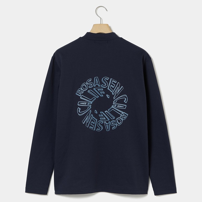 吸水速乾・UVカット・遮熱・ストレッチ機能を併せ持つ、表面感のある鹿の子目のエコ素材を使用。背中にはシーズンテーマの都会の喧騒や摩天楼をイメージしたプリントロゴが特徴で、1枚でも様になるロンTタイプのシャツ。日常のあらゆるシーンに最適なカジュアルアイテム。