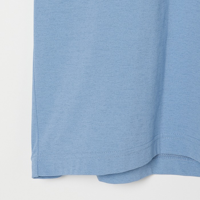 植物性素材であるトウモロコシ糖分を原料で作られた環境にやさしいリサイクル生地で、吸水速乾、UV、抗菌防臭機能に優れたソロナ天竺を採用しています。カッティングには特にこだわり、動きやすい構造を実現しました。背中のモチーフが特徴で、カジュアルなデザインと機能性を兼ね備えたアイテムです。