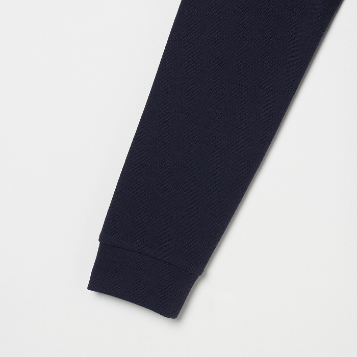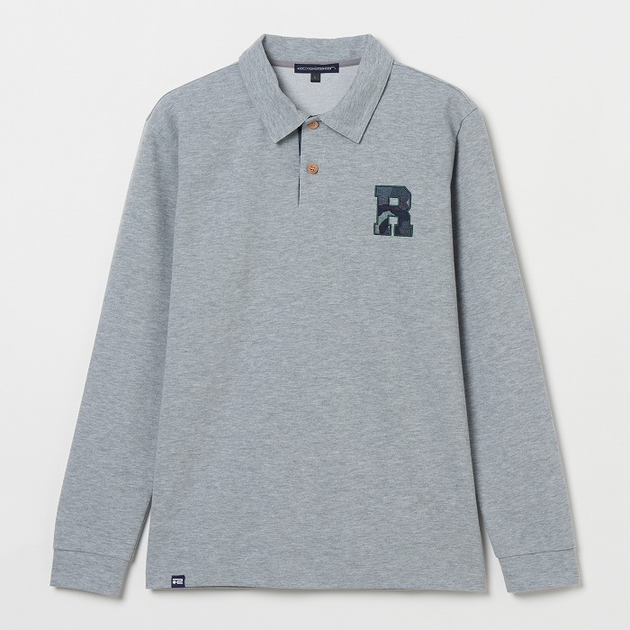 スポーティーな中に大人の遊び心をプラス。鹿の子ダンボール素材の長袖ゴルフポロシャツ。通気性が良く快適な着心地です。胸元の「R」のアップリケと、衿裏の迷彩柄がさりげないアクセントに、襟を立ててゴージャスに着用できます。落ち着きのあるカラーでどんなボトムスにも合わせやすく、コーディネートの幅が広がります。