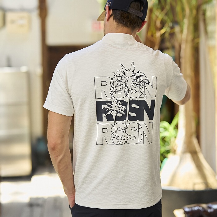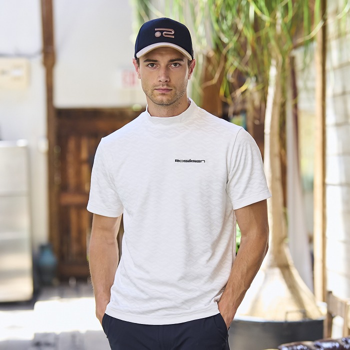 Rosasen(ロサーセン)幾何学柄 ジャカード 半袖モックネック