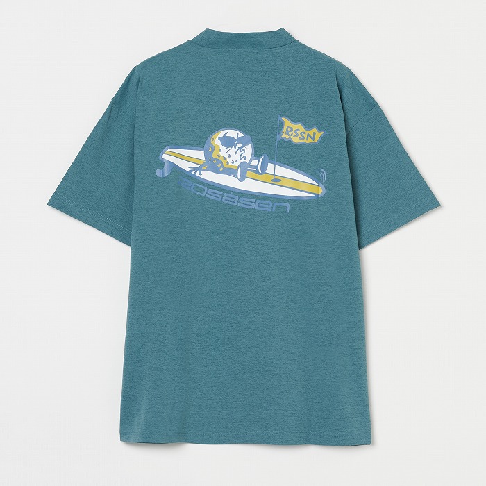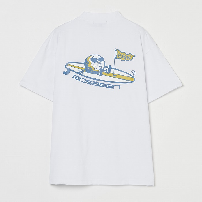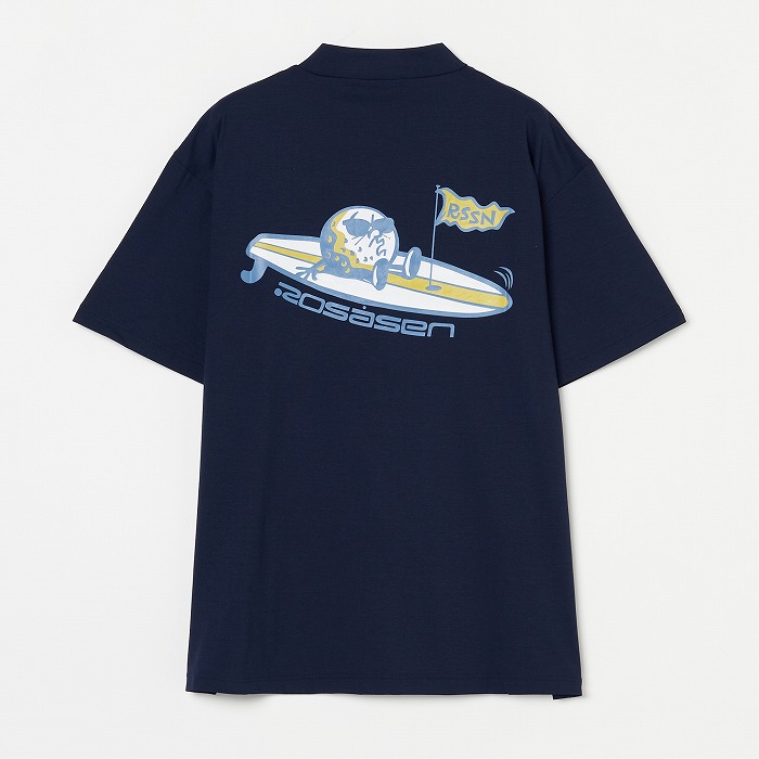 遊び心溢れるキャラクタープリントが目を引く、ソロナ天竺素材の半袖モックネック。環境に優しいだけでなく、吸水速乾性、UV、ストレッチ性も備えたハイスペック素材です。ゆったりとしたサイズシルエットで、リラックス感のある着こなしを楽しめます。ゴルフ場で注目を集めること間違いなしの一枚です。