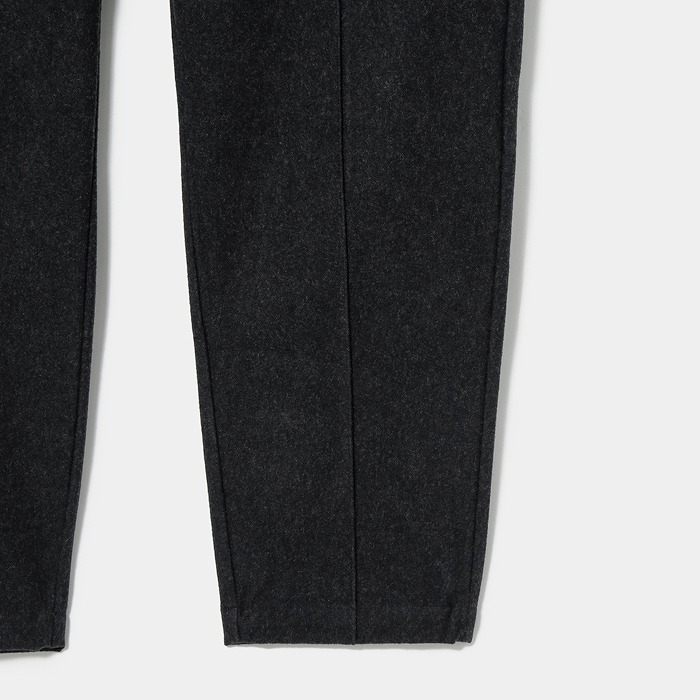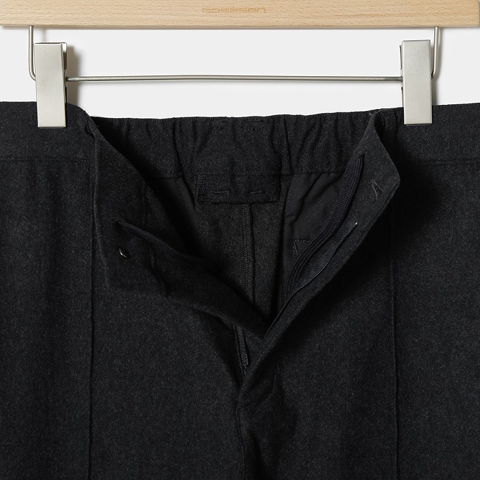 ウールライクながらキックバック性の高い4WAYストレッチの起毛素材。形状安定性が高く、膝抜けの心配もなく上品な見え方。ジョガーパンツの様なシルエットにセンタータックを入れ、キレイ目なデザインながらもスポーツに最適なアイテム。ビジネスシーンや街着、ゴルフとシーンレスに着用出来るところがポイント。