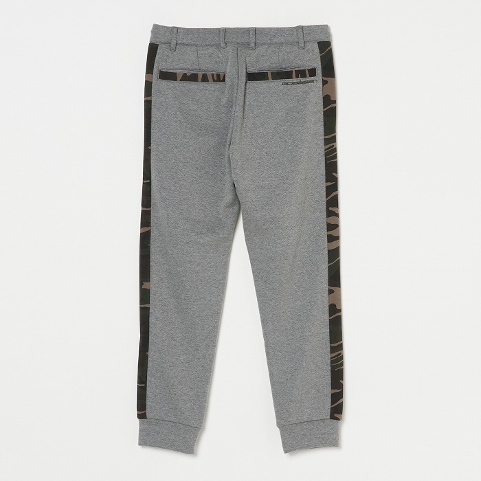 裏起毛で暖かく、快適な履き心地のジョガーパンツ。サイドの迷彩柄切り替えが、スタイリッシュなアクセント。同素材のトップスとセットアップも可能です。ゴルフはもちろん、タウンユースにもおすすめです。