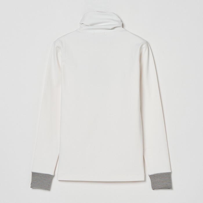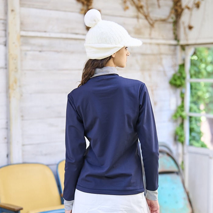 目の詰まった防風素材で、冷たい風をしっかりブロック。裏起毛なので保温性も抜群で、寒い冬も暖かく快適に過ごせます。衿裏にはボーダー素材を配置し、さりげないアクセントに。コーディネートに合わせて、襟元の見せ方を楽しめるのもポイントです。