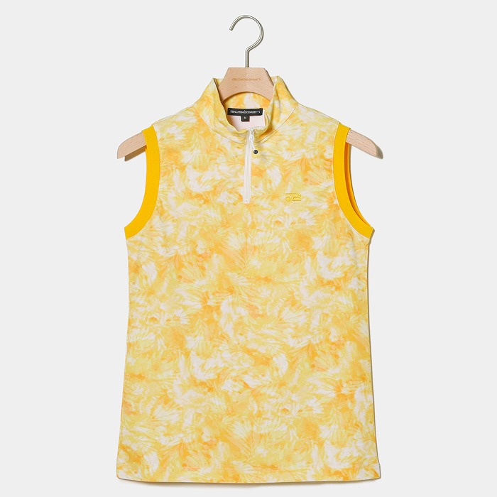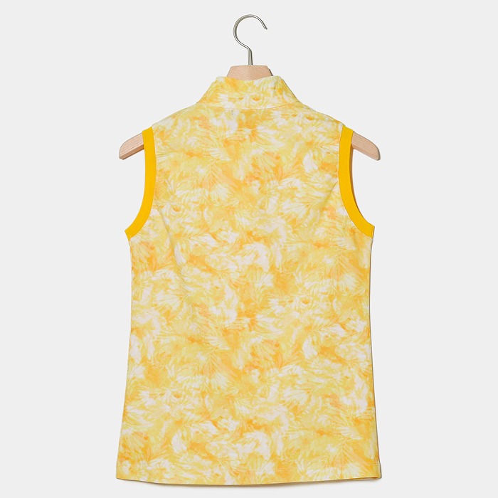 吸水速乾・UV・遮熱・ストレッチ機能を併せ持ち、タイダイ柄をプリントしたハイゲージ裏面鹿の子目のエコ素材を使用。首の日焼けを防ぐジップアップのスタンドカラーデザインがポイントで、ゴルフ場映えし、真夏も重宝する高機能素材のアイテム。