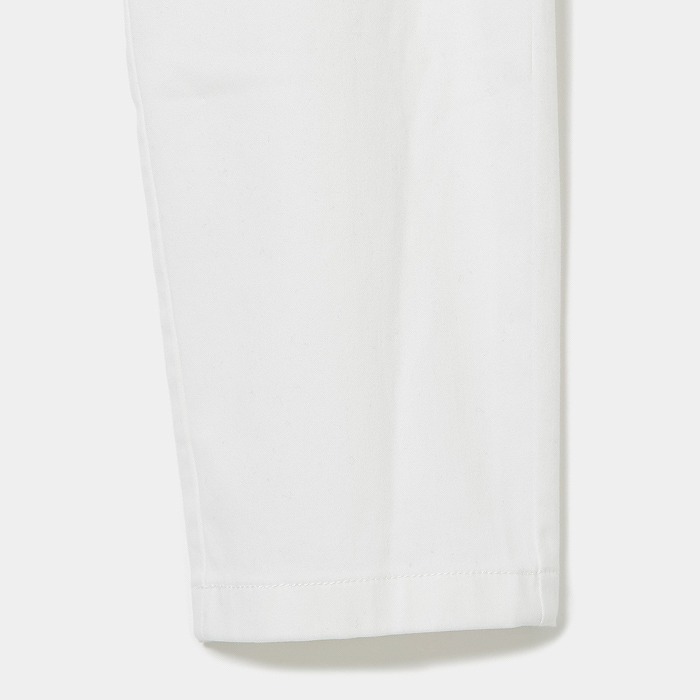 ロサーセンの冬の定番チノ素材で、ストレッチが効いた、微起毛加工で肌当たりが良さや柔らかさ、製品洗いを掛けて程よいカジュアル感を表現。ヒップから太腿に掛けてややゆったり目のテーパードシルエットで、あやゆるカジュアルスタイルに重宝するベーシックな9分丈パンツ。