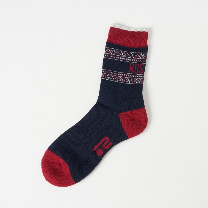 配色が目を引くオルテガ柄ソックス。足底・かかと・爪先はクッション性のあるパイル編みにし、衝撃を吸収しラウンド中の疲れを軽減。足底サポート入りでフィット感にも優れた、ゴルフだけでなくあらゆるコーディネートのアクセントになる便利なアイテム。