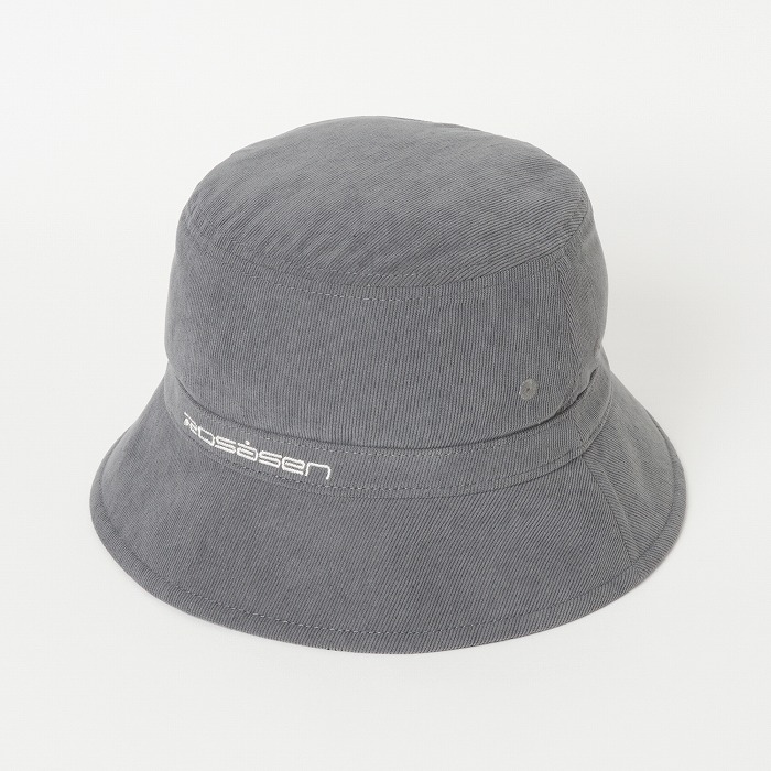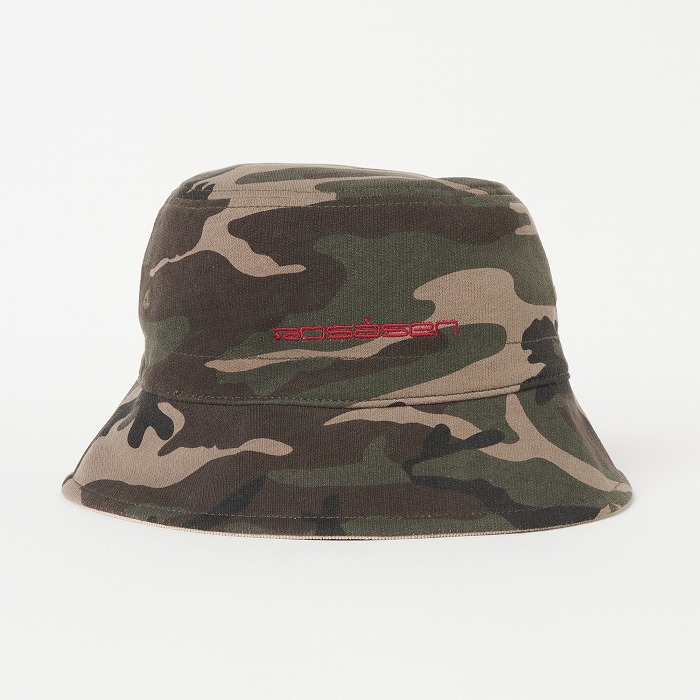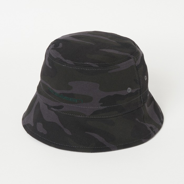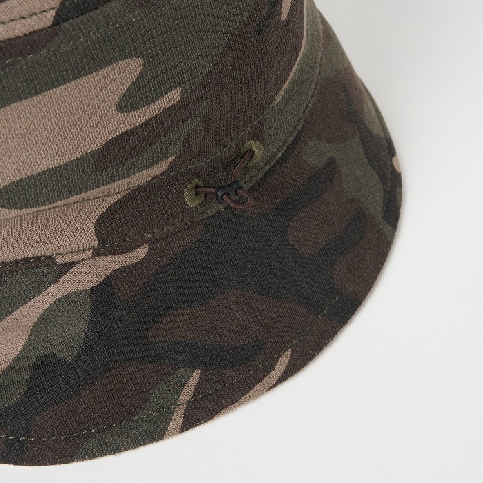 表面はポリエステルのコーデュロイを、裏面はウエアに合わせた迷彩柄のダンボールニット素材を使用したユニセックスのバケットハット。サイズアジャスター付きで、シンプルなデザインながら配色のロゴ刺繍がアクセントに。リバーシブル仕様でコーディネートに合わせ使い分けが出来、重宝するアイテム。同柄ウエアとのコーディネートもお勧め。
