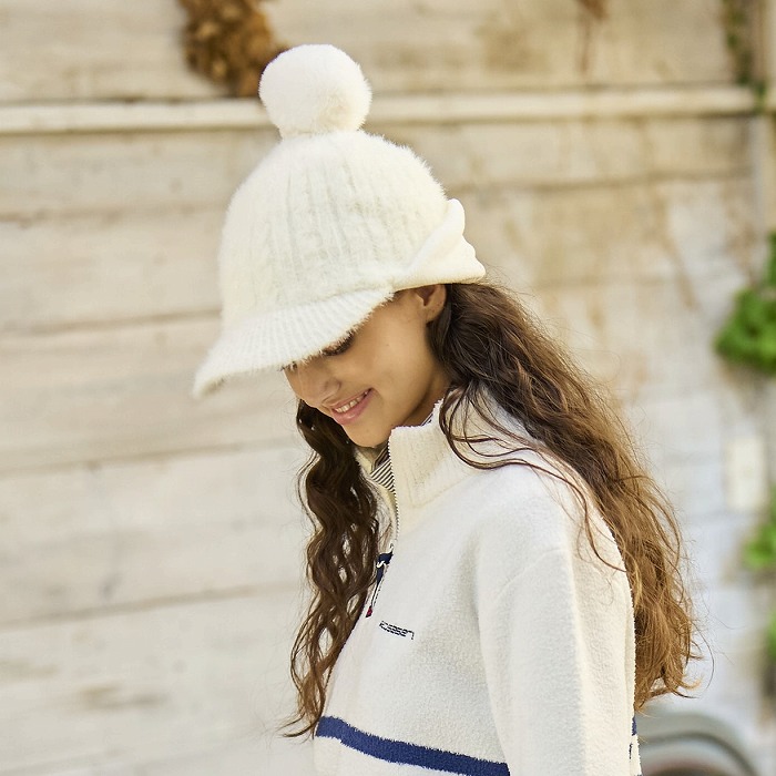 Rosasen(ロサーセン)レディース フェザーヤーン 裏フリース ケーブルニットキャップ