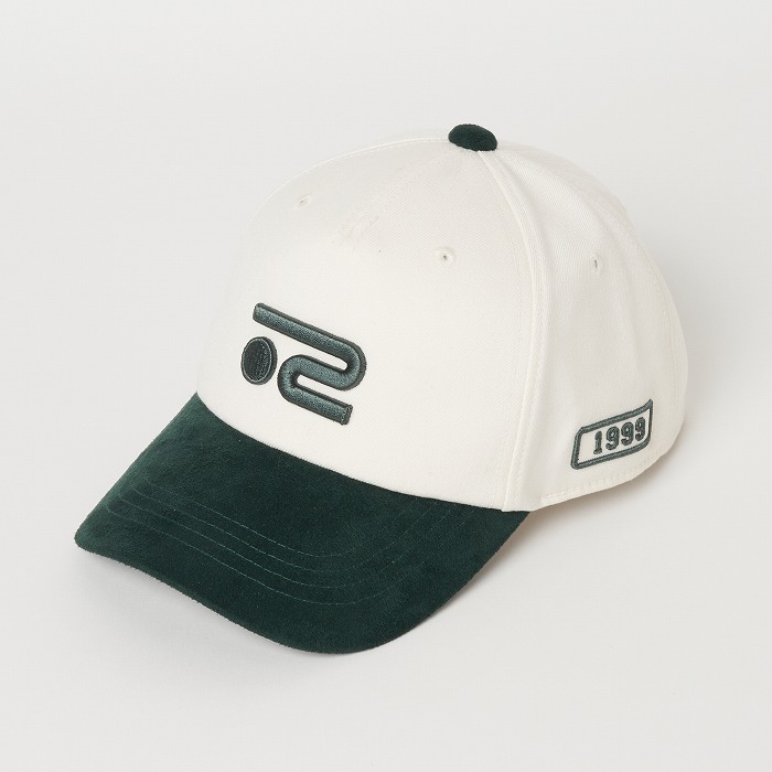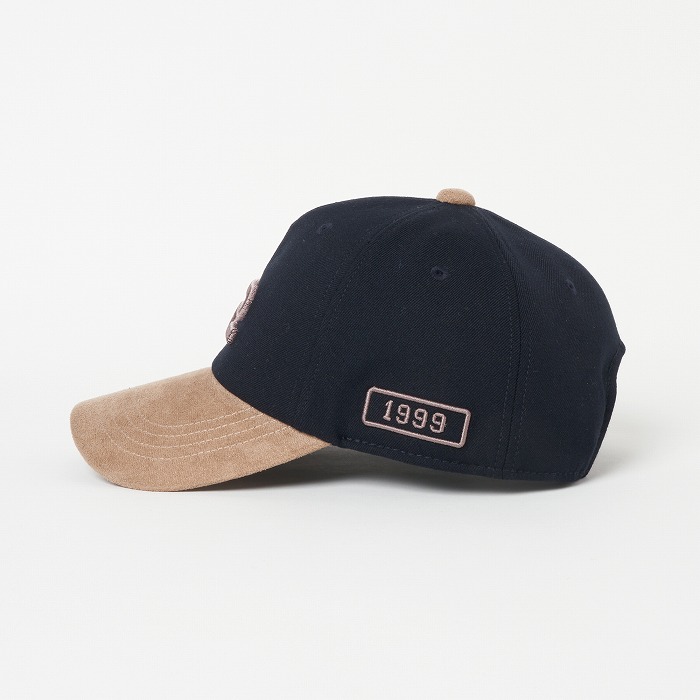 アッパーは起毛ツイル素材を、ツバはポリエステルのフェイクスエードを使用。ツバやそれに合わせた配色の立体ロゴ刺繍がアクセントになったベーシックなキャップで、後はアメリカンアジャスター仕様でよりカジュアルに。