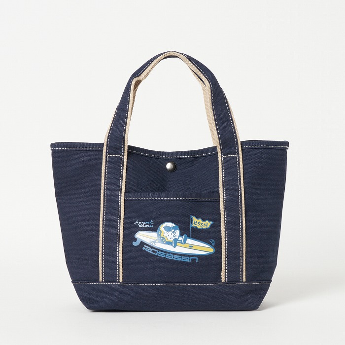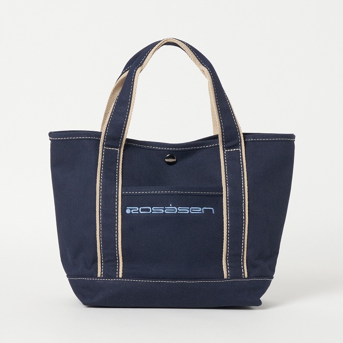 裏コーティング加工を施したキャンバス素材を使用。HIROCK SHOWさんとのコラボイラスト『ボールボーイ』入りで、両面ポケット付きのカートバッグ。口はドット釦開きで、シンプルながらもロサーセンらしい大人カジュアルなアイテム。